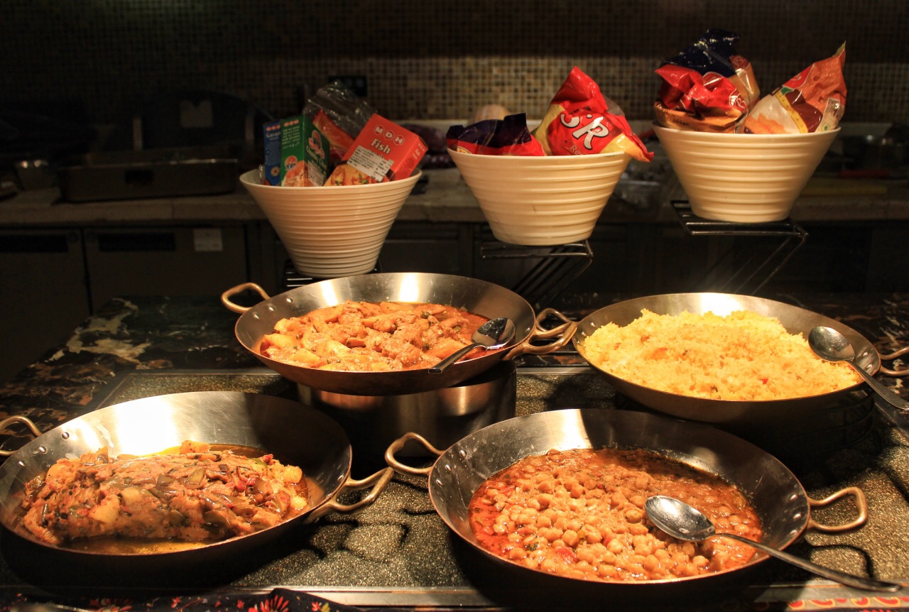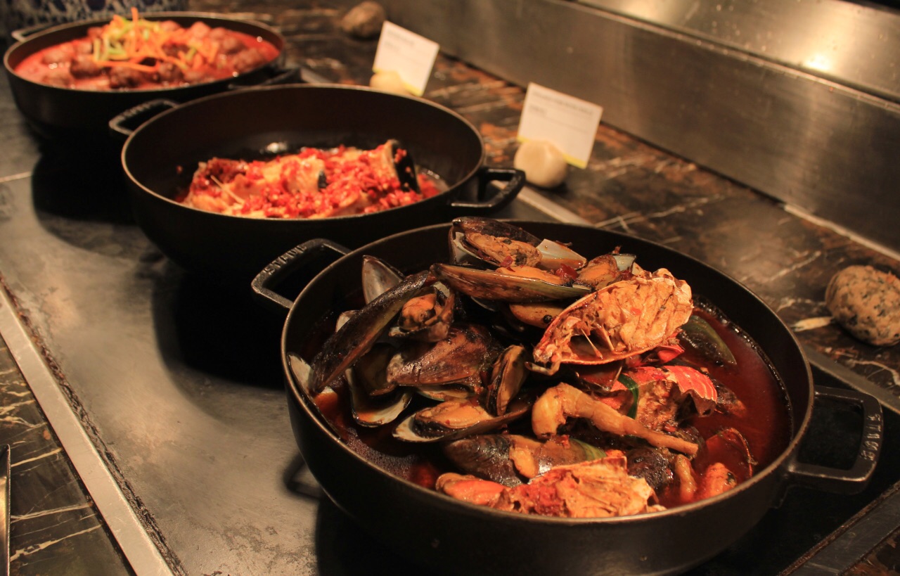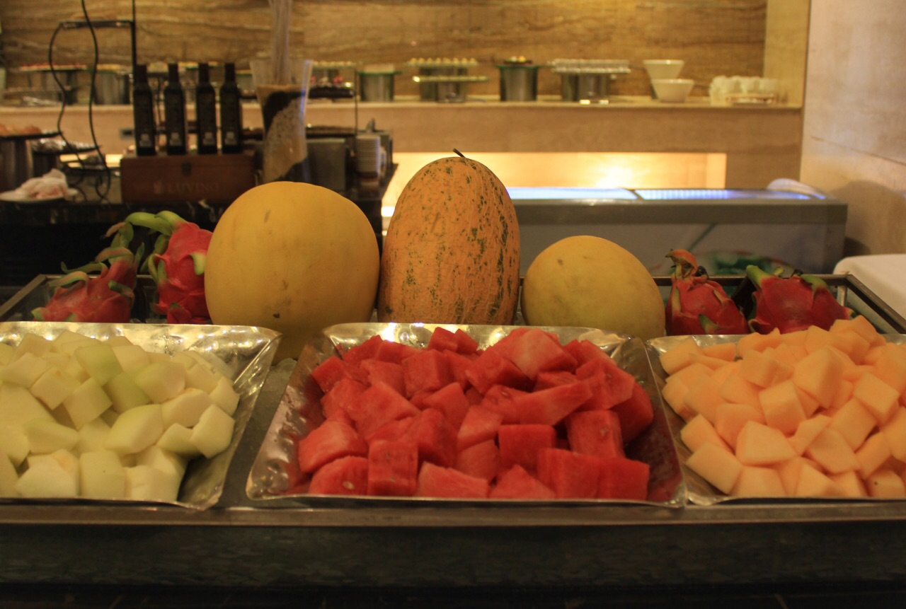 酒店一楼的知味自助餐厅,环境优雅,气氛欢快,采用深木色调和中国传统艺术品装饰,并配有时尚吊灯,是享用早餐、午餐和晚餐的理想之地。 菜品种类齐全,中西式结合的热菜配以现场制作的碳烤牛羊肉、各色海鲜吃到爽,日料无极限,红酒啤酒无限畅饮喝到嗨,诱人甜品、水果和软饮……我去吃的时候刚好遇到餐厅在做东南亚美食节,琳琅满目的异域小吃也相当诱人,每一种味道都是大厨们满满的创意和诚意。