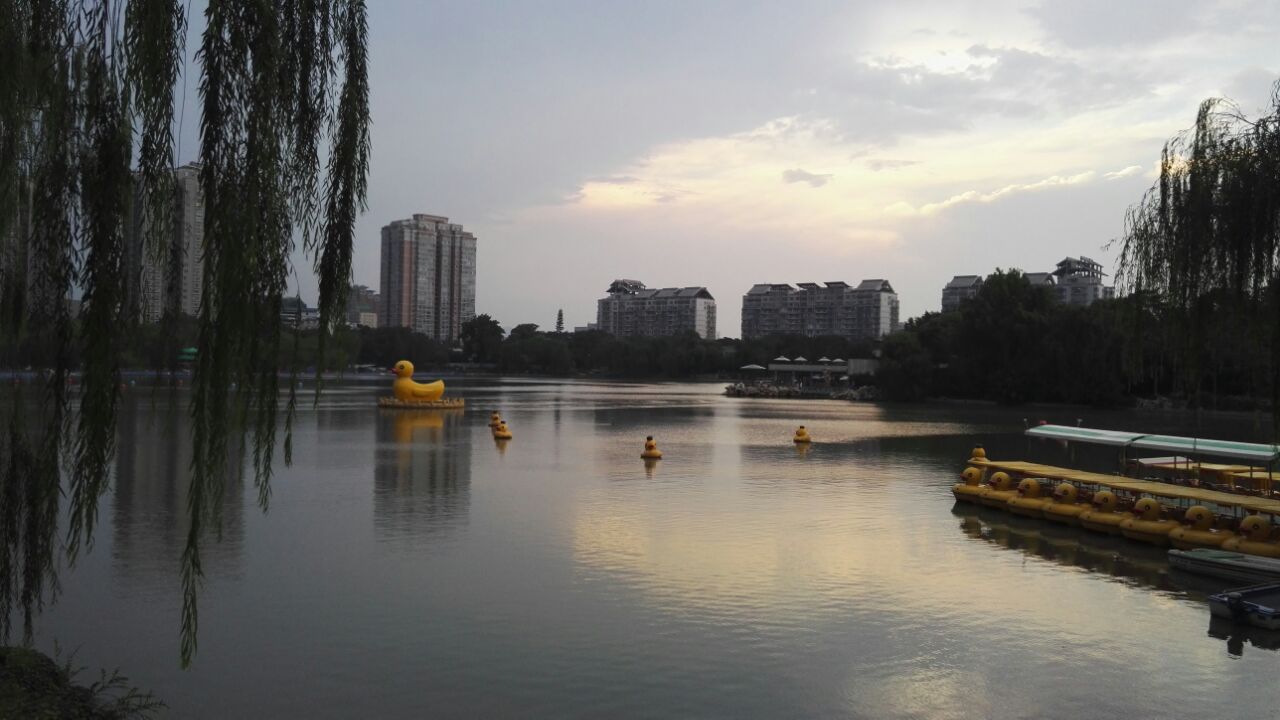 风光秀丽,有湖有桥有竹有荷有亭有石,湖中还有萌萌可爱的大黄鸭。可以赏荷花、划小船,也可以寻紫竹、逛凉亭。日落西山时的夕阳美景倒映在湖中,伴着俏皮的大黄鸭和垂柳怪石,美的一塌糊涂。公园免费,周末常有民乐团队在园中各处吹拉弹唱。最近在西门入口处有一排围起来整修,但大部分景区还是可以正常游玩的。