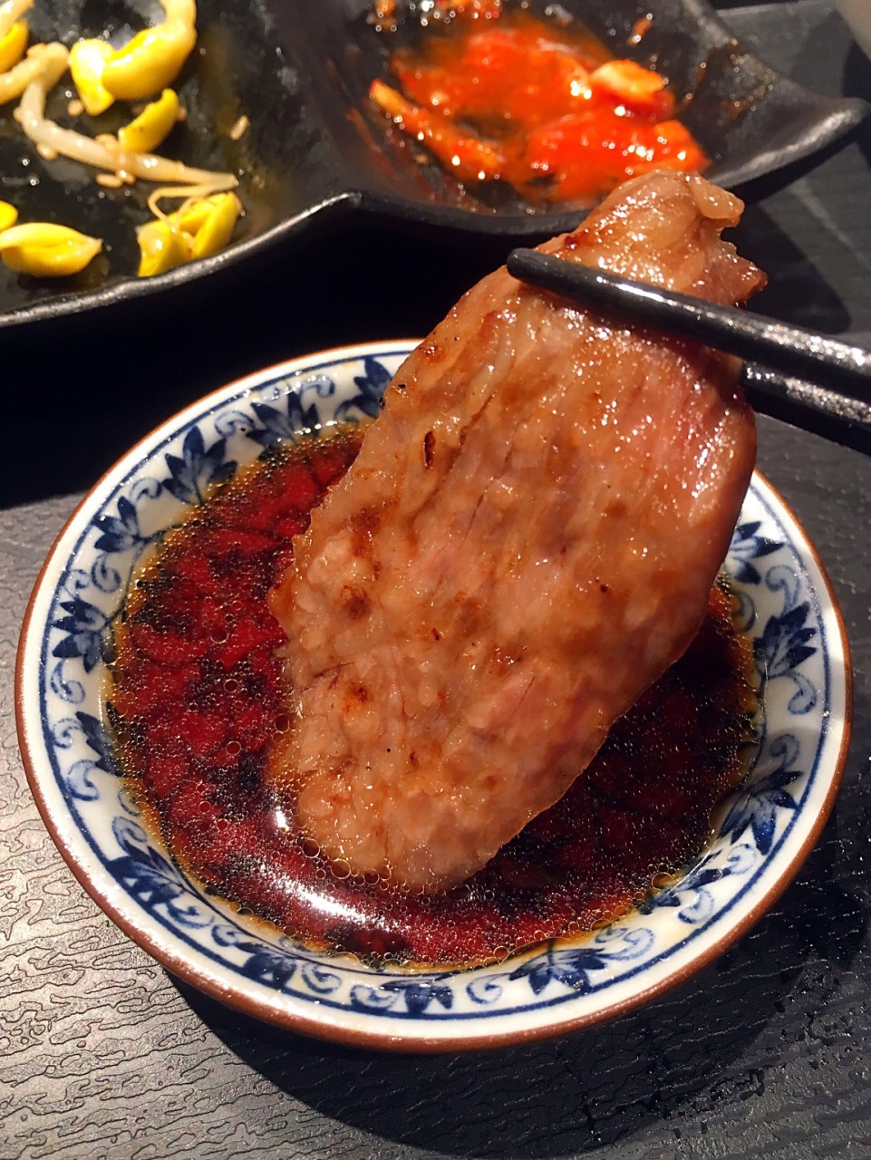 前者是满满都是漂亮的油花的A4、A5,后者是一般的A3. 套餐给的肉只有五六片,但是挺大的,油...