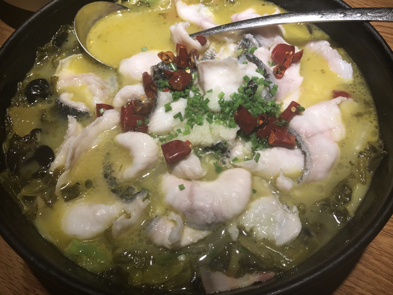厨师手艺很赞 每道菜都好吃的掉眉毛 只是有个困惑 在酸菜鱼汤里发现了一片腌火腿 不知道是不是店...