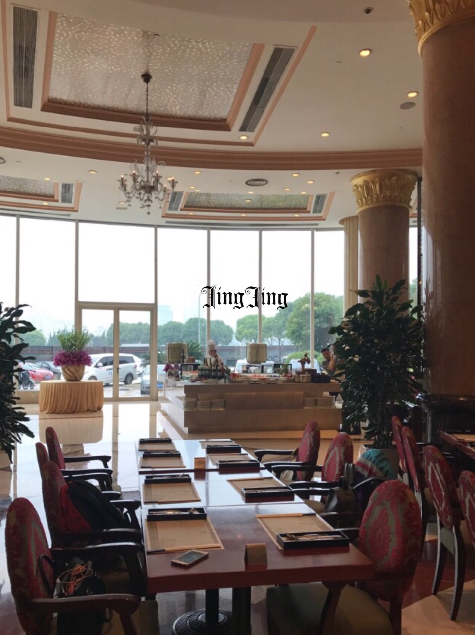 吃自助是我强项,挑一家性价比高的、环境好的,关键是还没有拔草过的,最后选了东方滨江国际会议中心这家的自助。坐落在陆家嘴的滨江大道,进门开始就能感觉到高大上,笑颜相迎的迎宾和领位,确认预定后带领入座,反正人还不多,选了一个光线最好的长桌,一家人落座。 午市自助人不多,来用餐的老外都戴着工牌,估计附近开会洽谈工作的。餐厅分日式海鲜、熟食铁板、水果、甜点冰淇淋、饮料,基本酒店该有的这里都有。 ☞ 日式海鲜:午市有三文鱼、象拔蚌刺身、甜虾、海螺、青口贝,还有小份的芥末章鱼、海蜇等,蘸醋或酱油+芥末,三文鱼切得很小块,处理的不错,肥美,忍不住多拿了几盘~食材还是填充的很快的,也比较新鲜。 ☞ 热菜铁板类:羊排、羊蝎子、肉排、鱼排、剁椒鱼、鸡肉、鸭胸肉应有尽有,可以等现做的,热气腾腾的有肉汁,牛排铁板现做的还是比较赞的。热菜选个人习惯的还是羊蝎子和鸡肉,谁叫我是肉食主义者。 ☞ 汤羹类:除了排骨炖汤、玉米汤,这边还有白粥和豆腐花!!!加酱油、醋、辣油、麻油、虾皮、榨菜、海苔条,妈呀,太好喝了。到酒店吃自助,我竟然喝了两碗豆花。 ☞ 沙拉水果:基本的沙拉酱都有,都挺充足的,but没有甜玉米,哈哈。小遗憾,在粗粮蒸锅那里找到了玉米,好吧,沙拉里没有大颗的甜玉米是个小遗憾。水果种类比较多,西瓜、葡萄、荔枝、白瓜、菠萝、黑布林、香梨,西瓜和菠萝比较甜,其他尝个鲜即可。 ☞ 甜品冰淇淋:甜点蛋糕有巧克力慕斯、布朗尼、芝士蛋糕、热布丁……适合孩子们的巧克力喷泉、棉花糖、水果软糖也都有。冰淇淋是酒店自制的,有个漂亮的MM帮着挖冰淇淋球,很客气,力气也不小,哈哈。14时午市结束收完糖果类还帮我拿了几个可乐味的软糖,多谢。 ☞ 饮料:午市自助点评团购158元竟然还包饮料,真的良心店家。有西柚汁、橙汁、柠檬水、热咖啡,选择还是挺多的,至少不是碳酸饮料。 午市11:30-14:00畅吃,一家人聚餐吃吃喝喝聊聊天还是很划算的,性价比很高,我们这桌有负责的店员收空盘很及时,各个食区的厨师也都客客气气,服务态度五星。