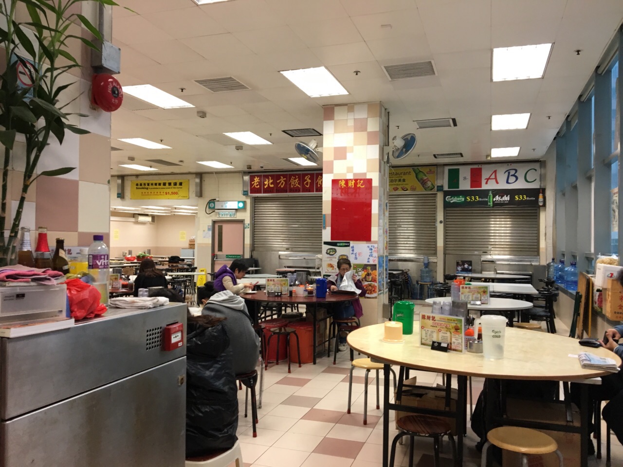 皇后街可不是皇后大道,而是连通皇后大道与德辅道的一条小街,就在宜必思上环店的拐角处。手扶梯上到楼上,见到的是整个室内的大圆桌,有七八家餐厅在这里经营。原来所谓的熟食中心,就是百姓生活中离不开的大排档,基本上都要与陌生人拼桌,很少有游客来到这种地方,都是附近的邻里邻居们。