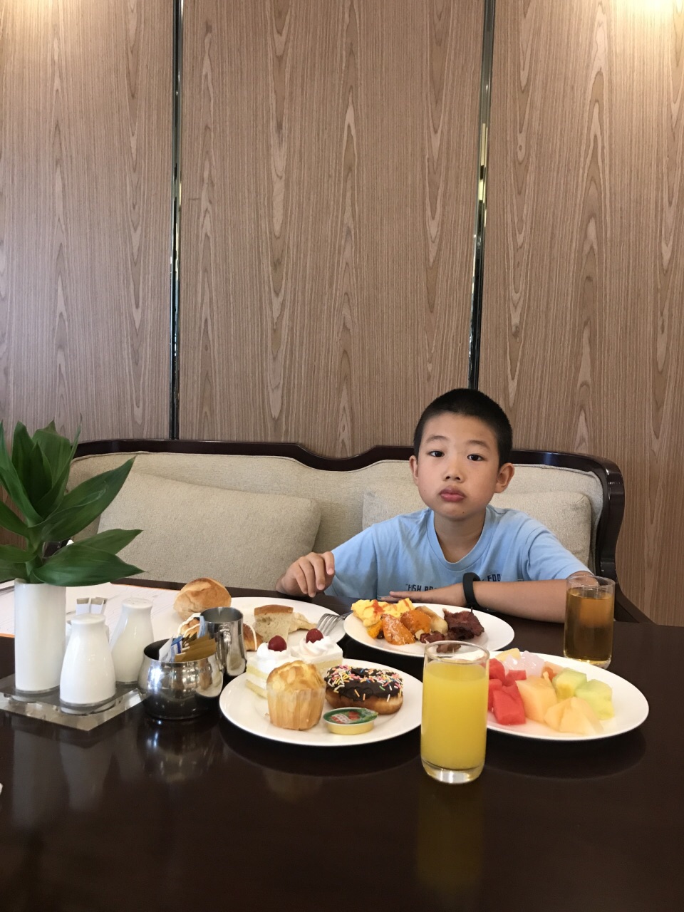 ...算可以 水果味道不错 培根焦了点 其他的五星酒店都类似吧 大人115 孩子75 还可以总的来说就在日航饭店二楼 自助种类还算可以 水果味道不错 培根焦了点 其他的五星酒店都类似吧 大人115 孩子75 还可以总的来说