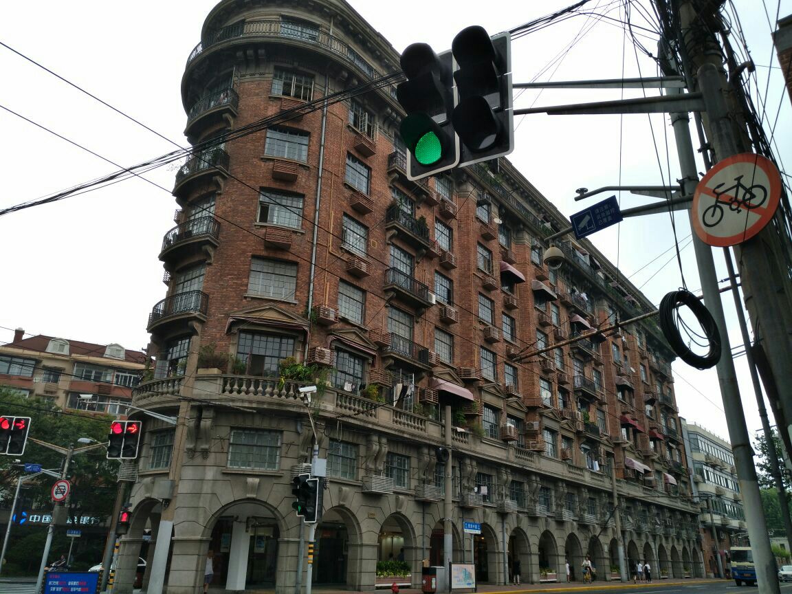 武康路与淮海中路交界口处,建筑大师的经典作品,的确不同凡响。第一座廊式公寓,虽然经过岁月的洗礼,但依然能通过留存下来的部分感受到它独特的魅力。在国内很少见、但在欧洲很常见的建筑风格,以船为造型,很多名人如老上海著名演员王人美、孙道临等,都曾在此居住。