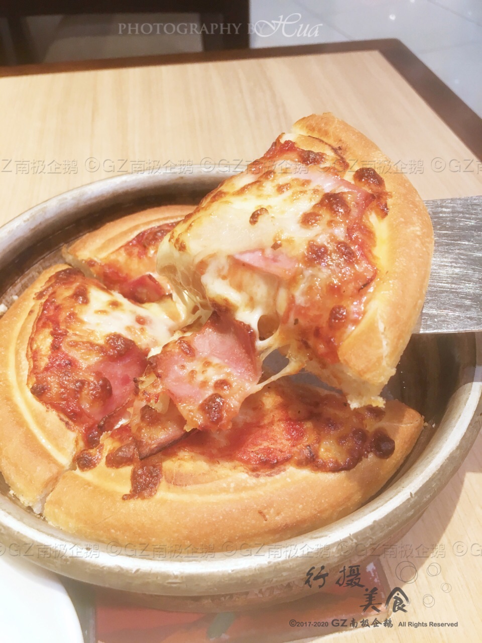 除了价格和其它分店一样以外,其余服务出品什么的都感觉很失望。午市时间饭店,当时人不算太多,所以服务员也相对减少,整个餐厅只有2个人负责点餐。后来顾客稍微多点,人手就忙不过来了,照了n次手,服务员才响应过来。出品方面,上菜等待时间较长,估计也是人手不足的缘故。但出品没因制作时间较长而提升,反而是我近期吃过的最差的一次,PIZZA 表面的芝士和饼底都烤过火了,略带焦味。