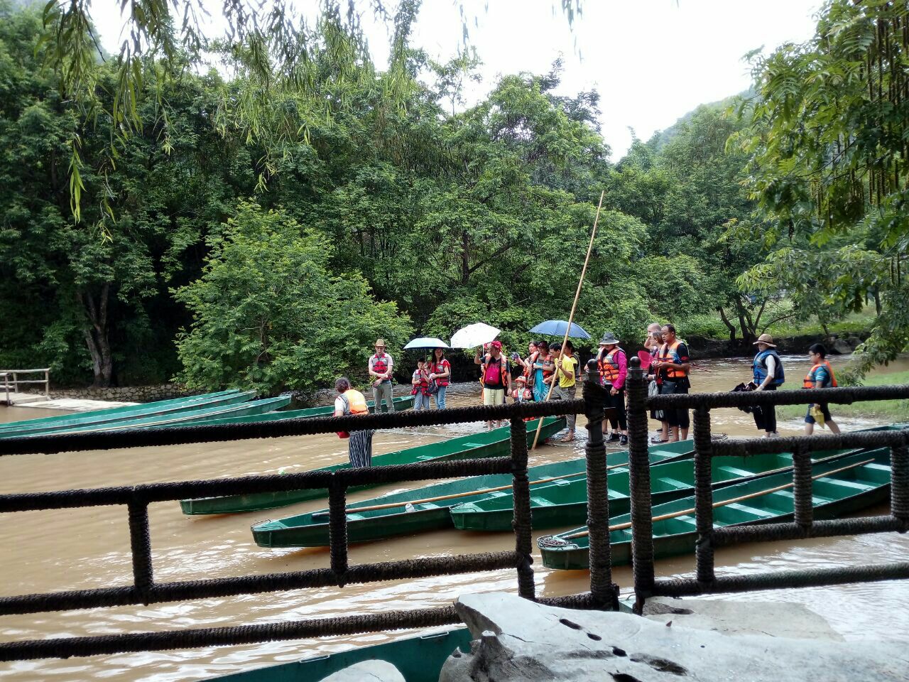 在景区售票处旁的小饭店吃饭,空心菜里竟然吃出3根头发!经过景区的溶洞内全程无灯光,有点阴森森的感觉,救生衣太脏还不够穿!出来景区穿过最后一个溶洞时没有救生衣可穿,要是船触礁翻了怎么办?景区内就一个小村子,基本没什么景点,有点小失望!并且景区工作人员都讲方言,有点难沟通。