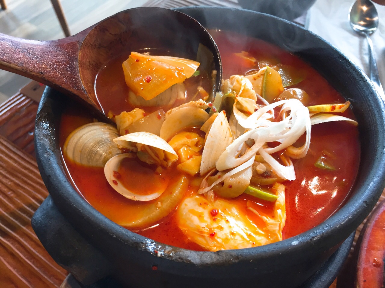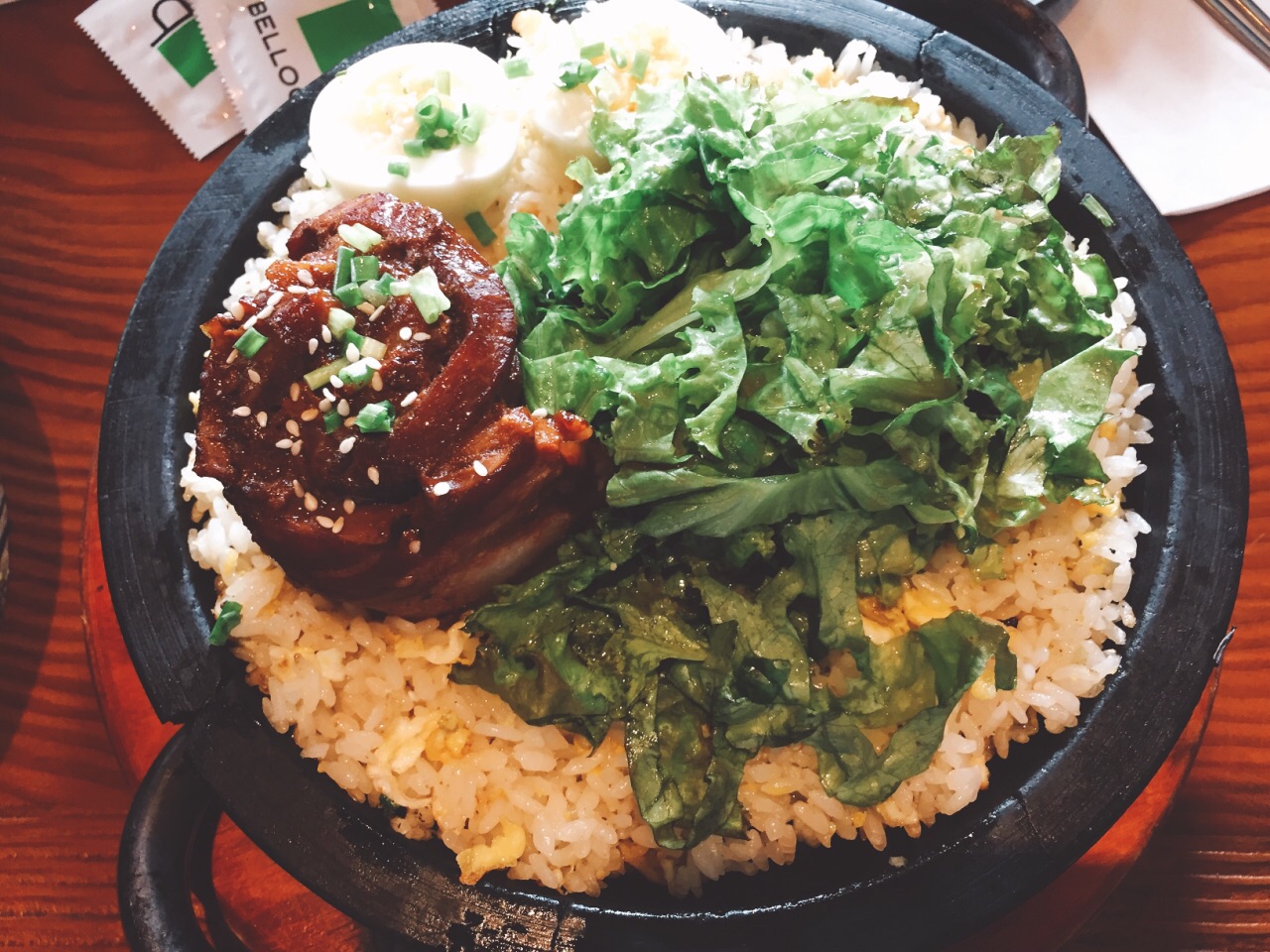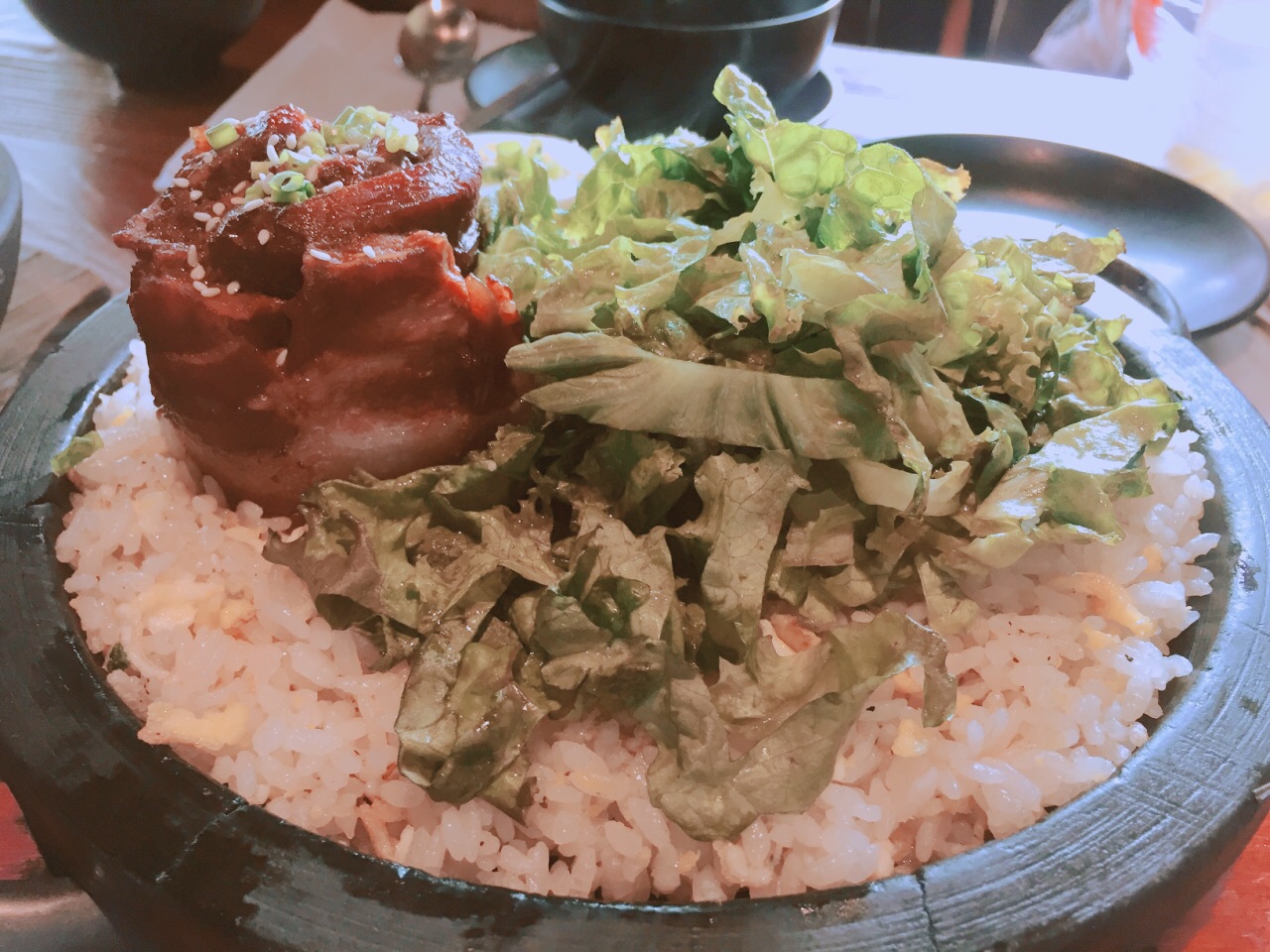 第一次在南京西路那里吃的,印象非常地好。做韩国创意料理,感觉就是加入了很多的奶油元素,烤肉也不错,今天赶时间点了两个主食126元一共,量很大,但是鸡蛋五花肉饭没我想象中好吃,五花肉有点冷了,饭也不是很入味,还有个豆腐海鲜锅我老公挺喜欢的,我比较一般,看来他家还是奶油类比较给力,下次再来试试。这里的水是瓶装的,加了印象分,服务很好。每次点好以后就鞠躬,牛奶雪花冰点了,来不及吃,退了