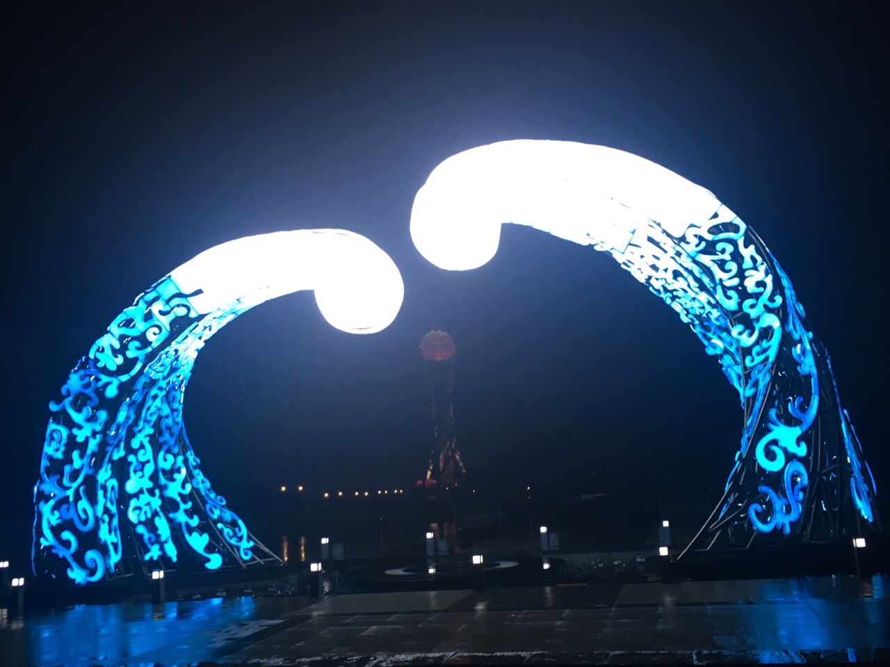 早餐坐在同一个座位上.夜晚的观光塔灯光明亮,各种颜色,美极了.我的房间窗户外直接可以看到观光塔