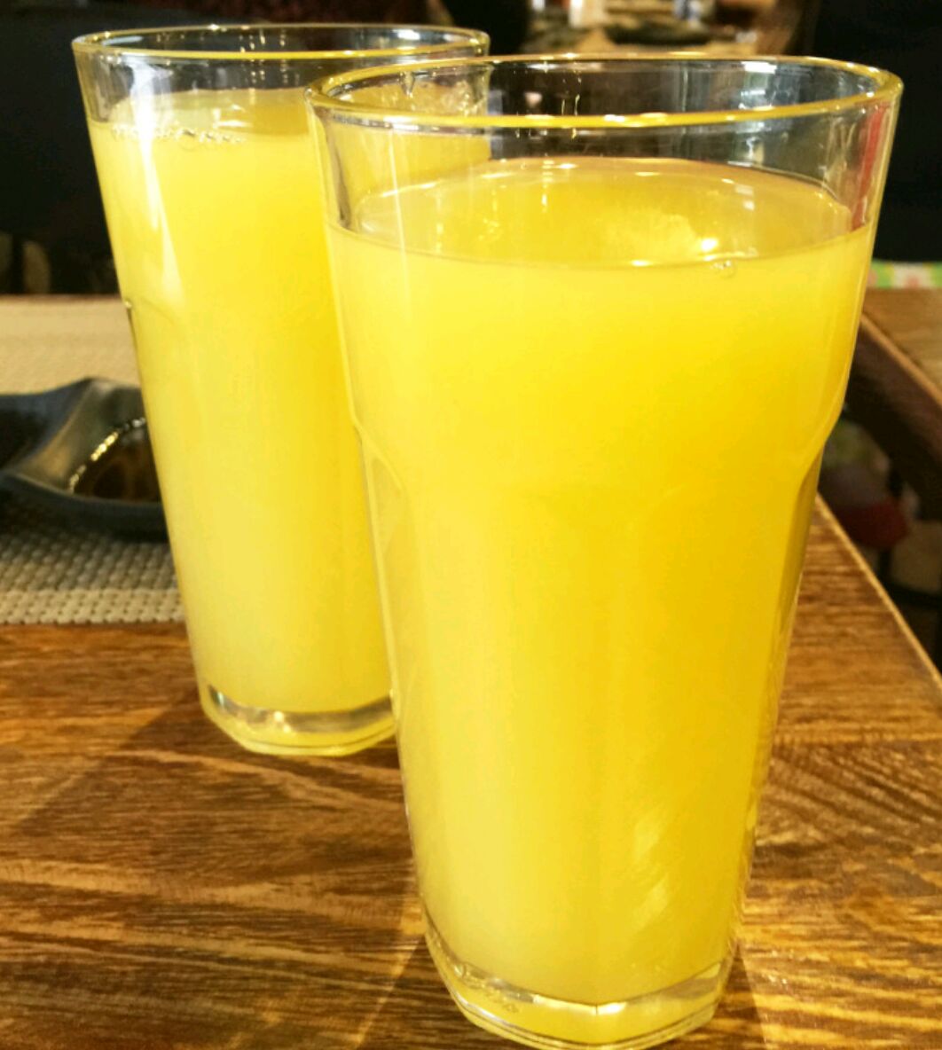 挺高档的一家餐厅。 食客质素都挺高的,不会大声喧哗讲话轻声细语的,进去自觉的就放轻脚步和语调了! 饮料要了最简单的橙汁,鲜榨的挺好,价格也是相当好的! 因为还有服务费,实在不敢再多点,到此一游才能对得住钱包,就是对不住胃了!