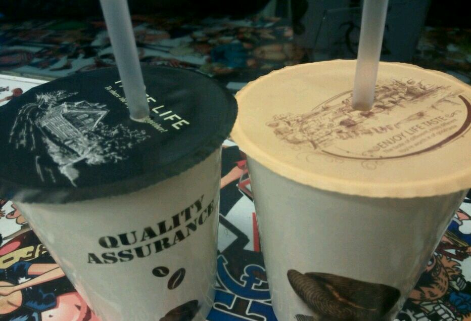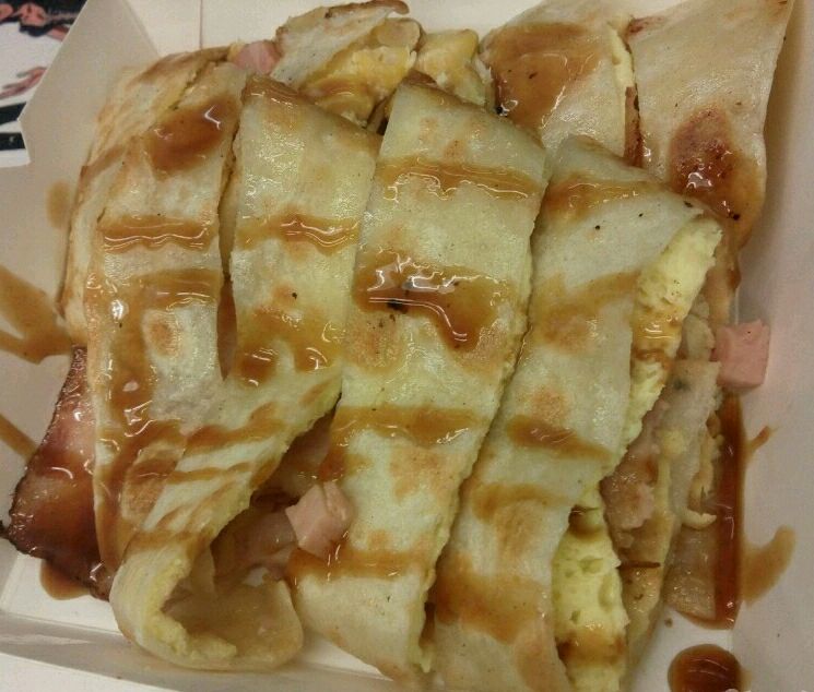蛋饼,选了玉米的,培根,香肠,好好吃啊!招牌奶茶,茶味很浓,柠檬茶,加了一点点糖,蛮好喝的,不腻