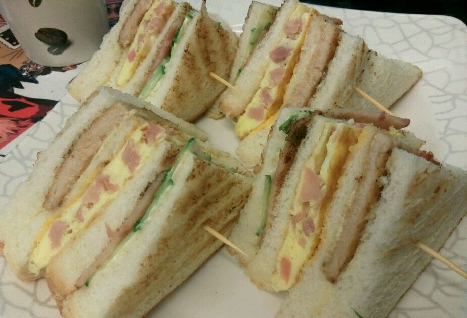 去看Gucci展结束就和闺密决定搞个下午茶,边上几家都试过了,搜索发现这个看评价还不错。一路走过去到店门口才发现,很小的一家啊……十个位子都不到,橱窗里放了好多海贼王的玩偶,书,可以边等边玩哦!……点了土司,脆脆的,香香的,还不错哦!蛋饼,选了玉米的,培根,香肠,好好吃啊!海贼王汇总三明治,很厚的一大块,切成四份,热的,有蛋,黄瓜,芝士,味道还不错哦!招牌奶茶,茶味很浓,柠檬茶,加了一点点糖,蛮好喝的,不腻!