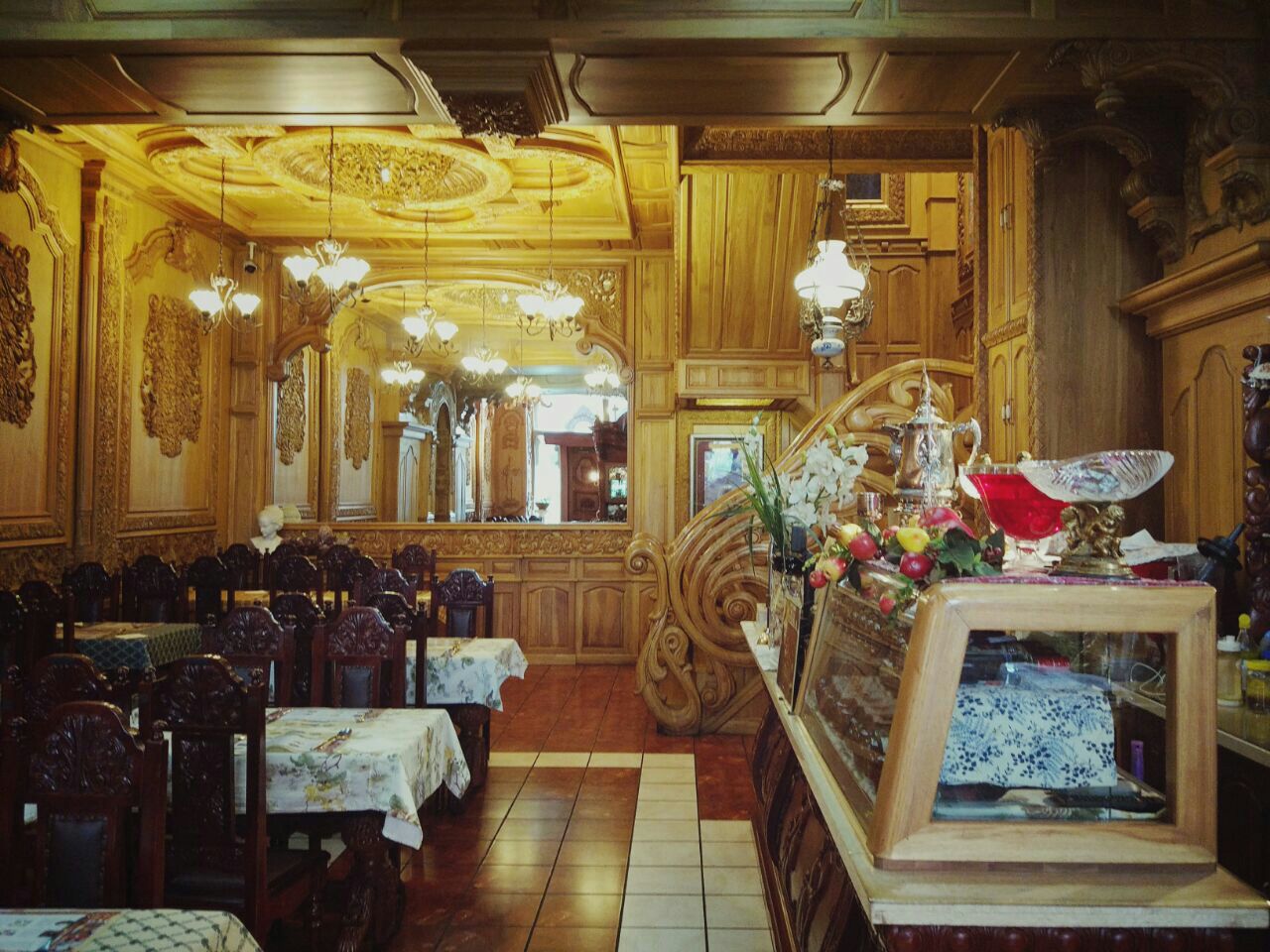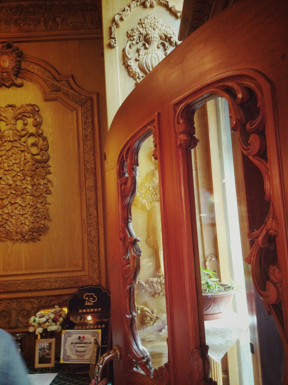 一进门就被里面的装修布局吸引了,入眼的桌椅、壁柜、楼梯、墙壁都是出自老板之手的精工木雕,楼梯转角的两幅壁画也是老板手绘而成!服务的小伙很热情的为我们做介绍,等餐的时间充当了室内导游。因为那天不是周末,午餐时间只有我们一家四口,妈妈说她太喜欢这种一家人不被打扰、听着音乐、品着美食的感觉了,太享受了