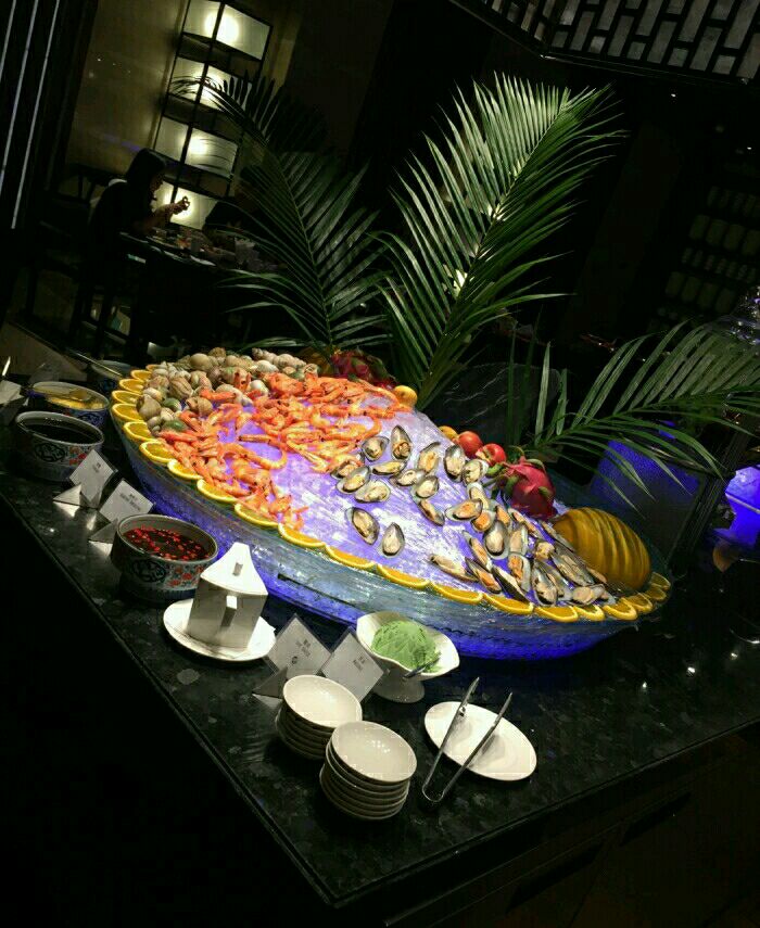 都说吃在广州,但作为一个北方人来说西安的小吃实在是赞的,所以不想错过每一餐去品尝各种面,无奈走了一天实在累,所以晚餐只好在酒店自助餐解决了。到底是五星级酒店,环境方面不必说的,价格不便宜,但看在这样一个西北内陆城市里还算丰富和新鲜的海鲜,也就能理解了。我对海鲜没什么特别喜好,但对五星级酒店的自制糕点甜品特别心仪,他家的蛋糕不错的,当得起五星级水准,虽然种类不多,但口感不错。没注意冰淇淋是不是哈根达斯,反正我也不爱吃。