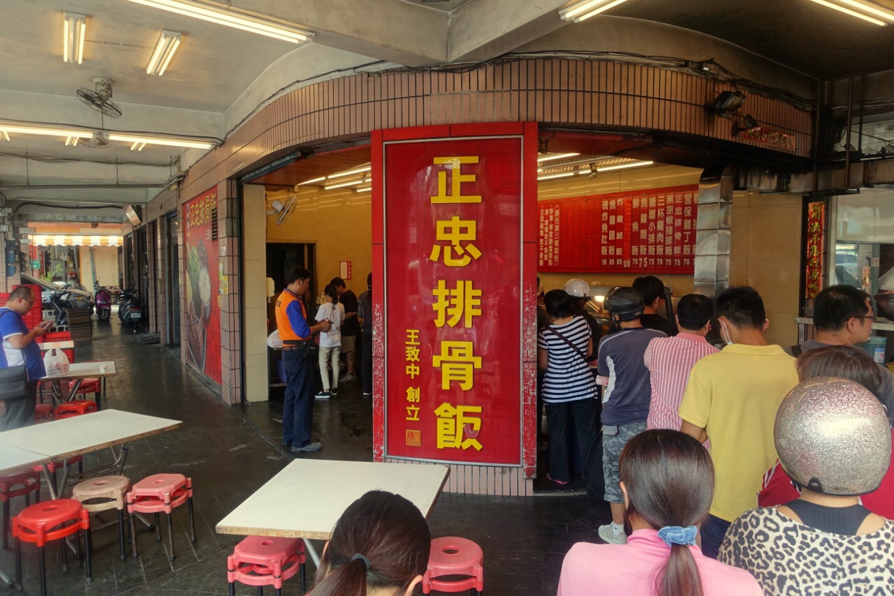 正忠排骨饭据说是每个高雄人都吃过的饭类便当,不论是上班族、学生或家庭主妇,都爱这快捷的美味。总店就在正忠路上,十字路口的巨大招牌至少要50米开外才能拍下来。这里真的是本地便当的圣地,很多人排队,但是没有一个人是坐下来吃的,都是打包带走。有各种各样的炒菜可以搭配在便当里,排骨饭,鸡排饭,炸鸡腿饭,烧鸡腿饭分量都很足,米饭搭配上3种小菜,胃口大开。价钱从70到105台币,绝对公道,值得一试。顺便一提,在这里工作的老阿姨们都超亲切可爱。