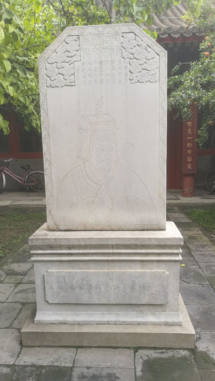 从南锣鼓巷的东棉花胡同向东走,走到头过马路就是府学胡同,顺天府学,文天祥祠都在这里。文天祥祠很小,是个两进的院子,以前是囚禁文天祥的地方。前院有文天祥的画像,是雕刻在一个石碑上的,后院是一颗文天祥亲生栽下的枣树,今天又是硕果累累。有个不和谐的地方,有胡同里骑三轮车的车夫带客人尽量,使劲晃动枣树,枣子大量掉下,车夫捡起来就吃,边吃还边说,这个跟人参果似的,七百多年历史了。照这样晃下去,这颗一直指南的名树也活不了几年了。