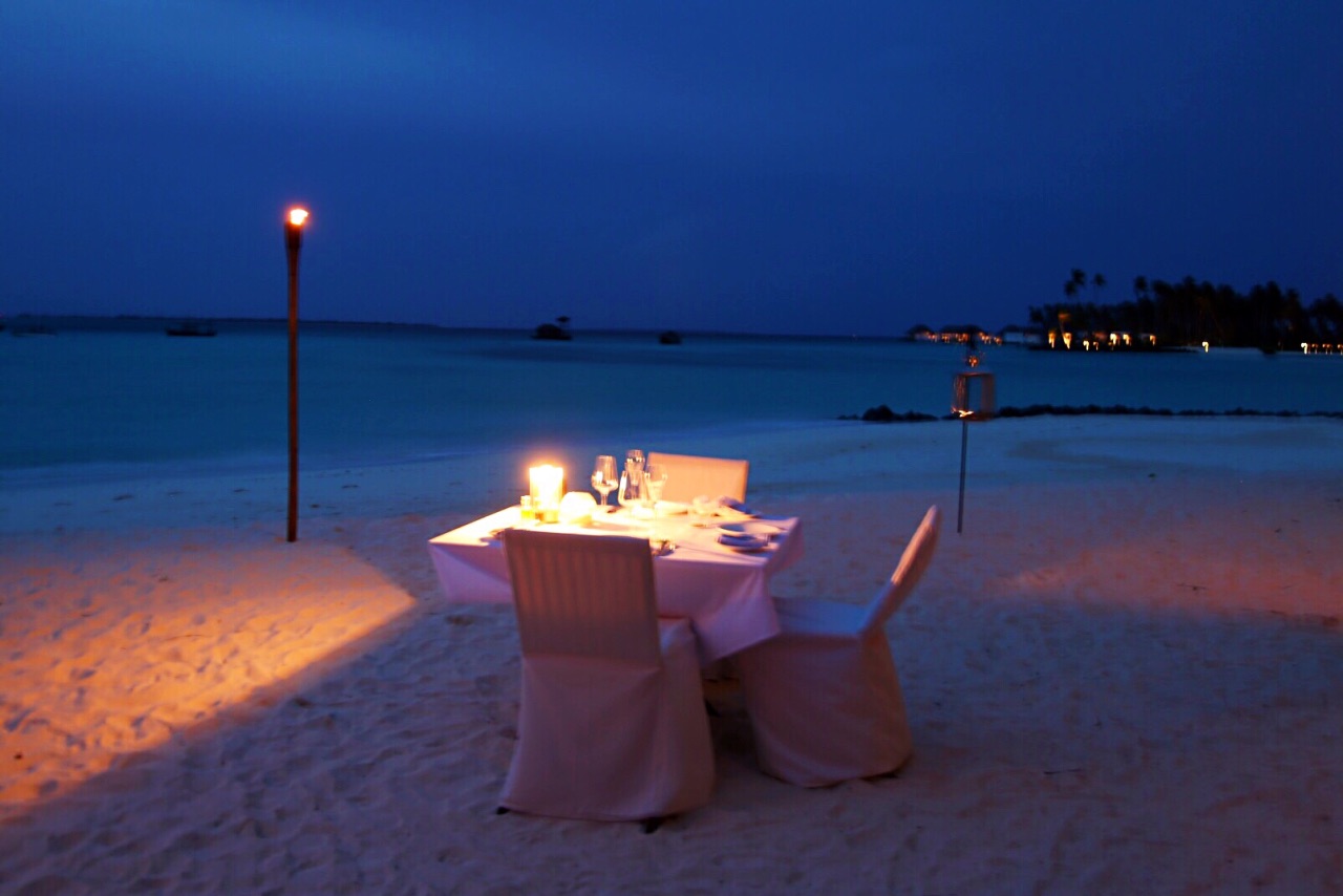 网友2017-08-21沙滩上的烛光晚餐美丽浪漫,有专属服务人员,食物是套餐制,大概有四大类,海鲜、马代当地、中餐、西...沙滩上的烛光晚餐美丽浪漫,有专属服务人员,食物是套餐制,大概有四大类,海鲜、马代当地、中餐、西餐,我们点了海鲜,食物量很多,没吃完,打包回房间了