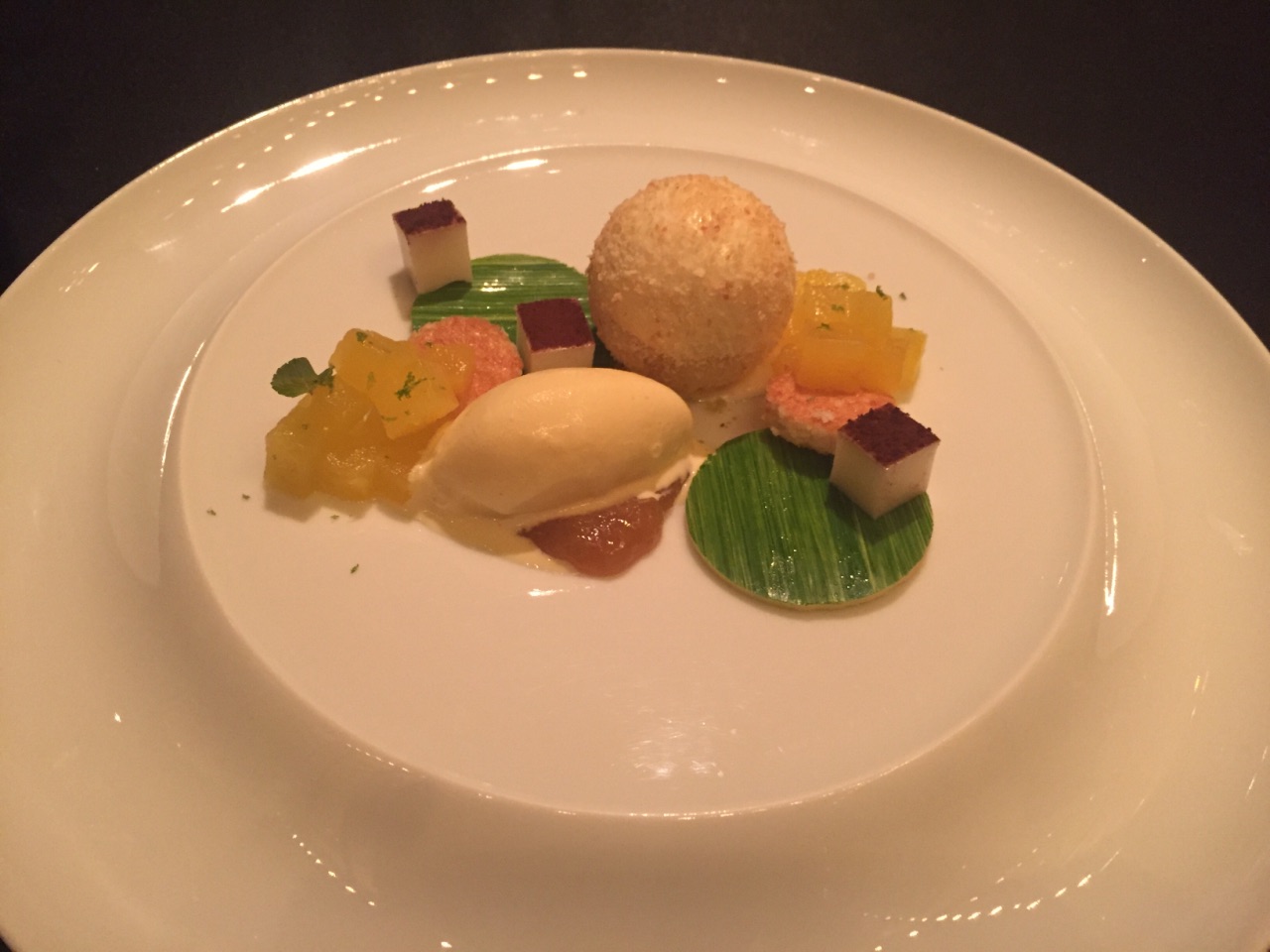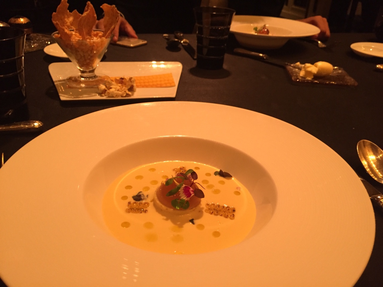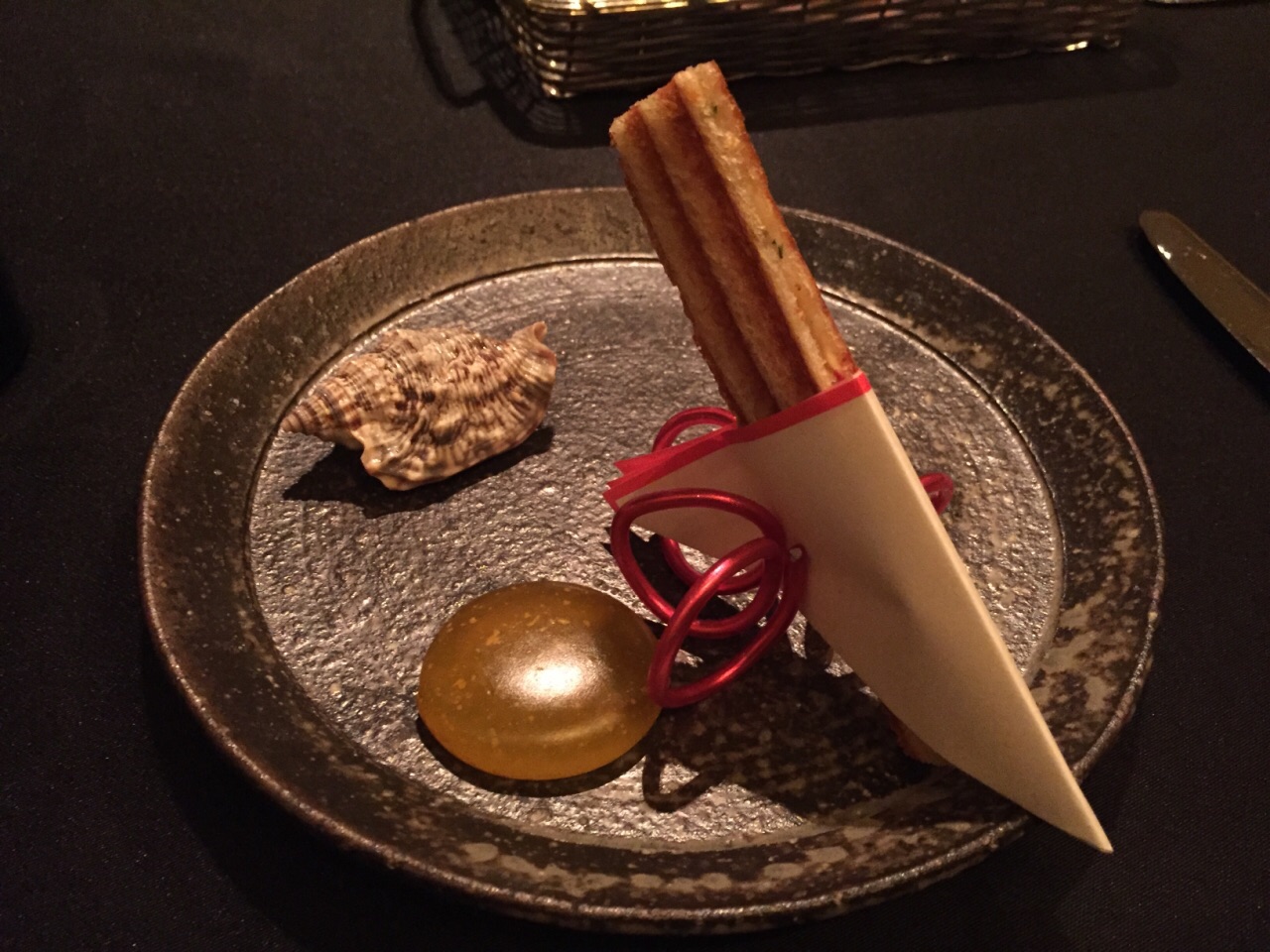 晚上去吃的 點的一份24000日元的套餐 中午便宜許多 感覺這家米其林的氛圍輕鬆許多 沒那麼拘謹 點的主菜是鴿子肉與鴨肝 太完美了 非常推薦 還有建議麵包可以少吃點 因為最後還可以讓你選一堆甜點 甜點做得精緻 上面還撒了金箔