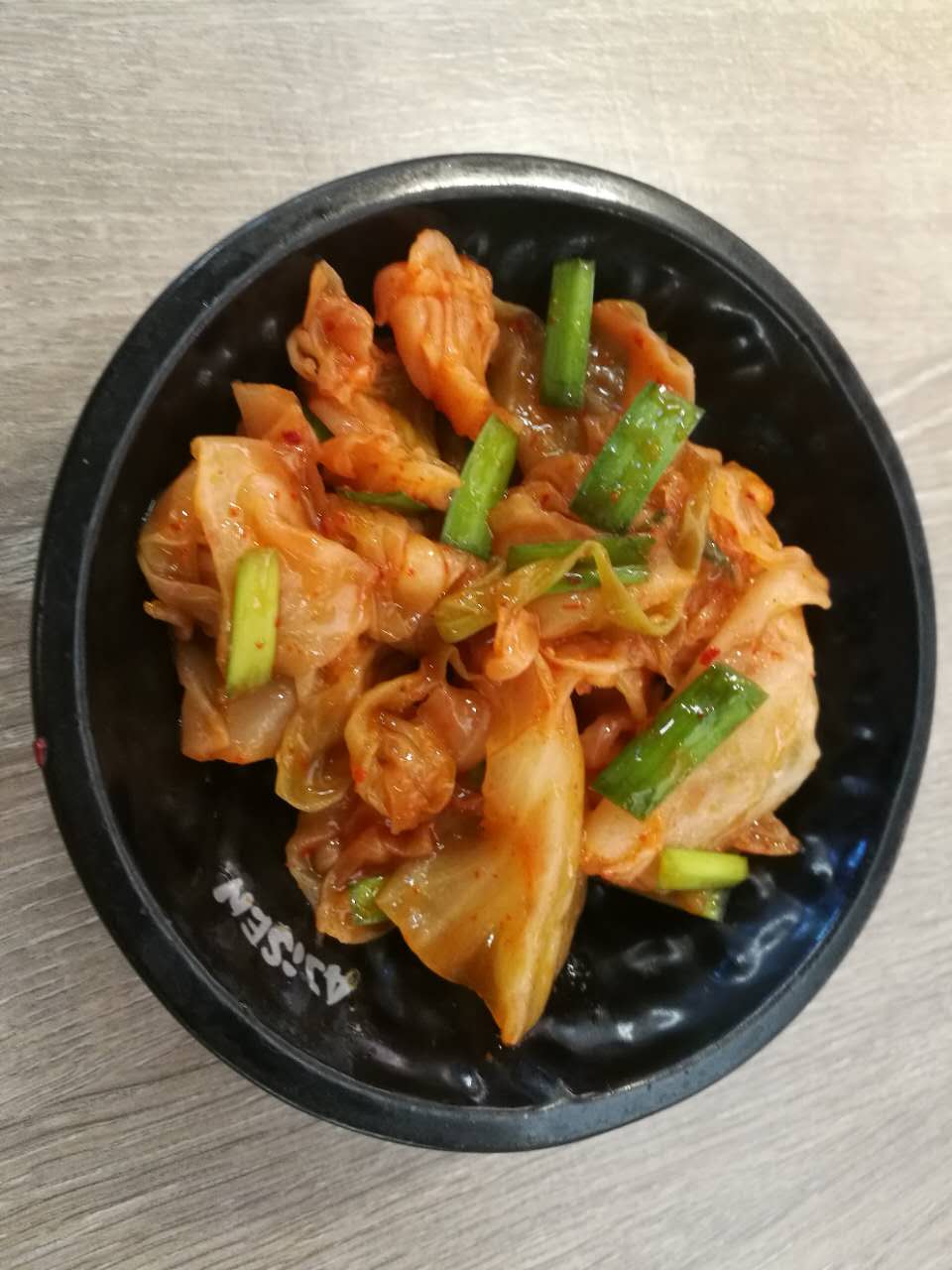 不辣,也不大甜,很一般,放了不少的韭菜在泡菜里