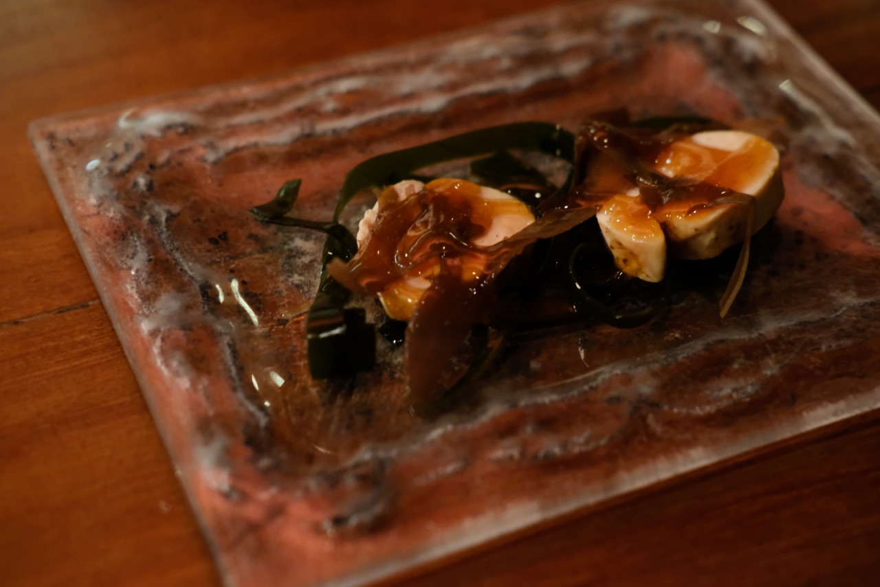 辣白菜烤肉值得推荐。印象深刻的是鞑靼鱿鱼做成寿司米的样子,上面点缀黑鱼子酱,口感很特别