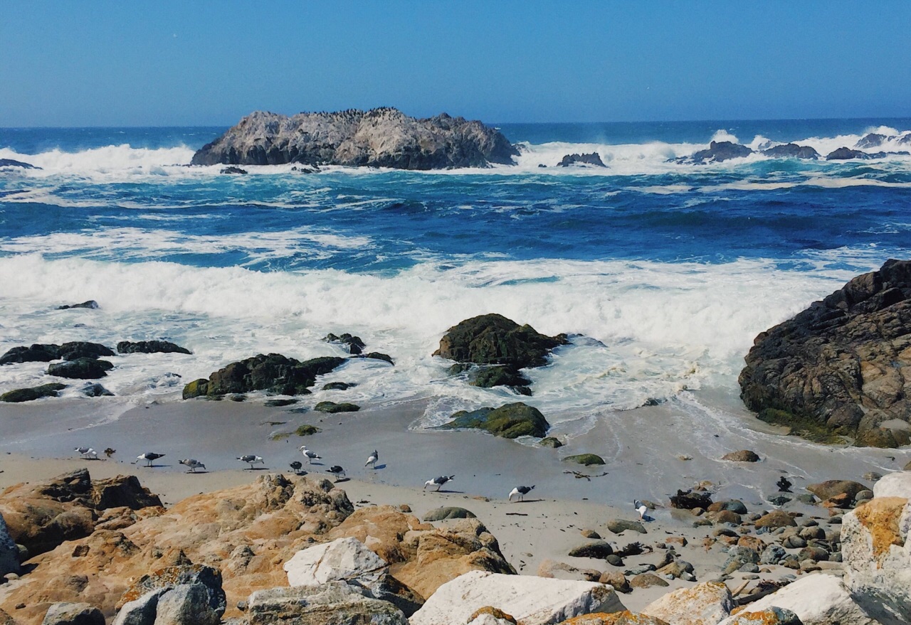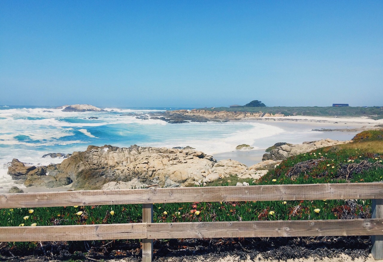 暖石滩(Pebble Beach-Spanish Bay-17 mile Drive)多云,不是看海的好天气,但是这里的海水真的好清好蓝。还遇见了优雅的小鹿,觅食的水鸟和打洞的小地鼠,希望下次天气好的时候能有机会再去