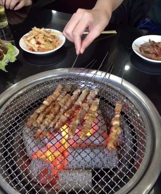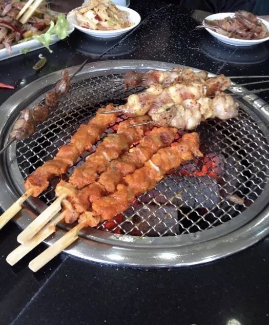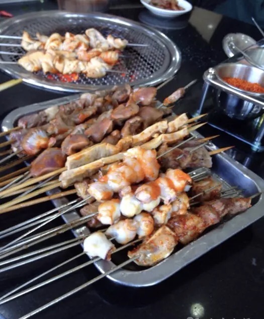 样样数数都点了四份尝尝,没觉得特别好吃,特别平常的味道,有的甚至很不好吃,一顿饭下来,小伙伴们一致认为腌的嘎叭虾和凉拌的板筋好评,烤串不太喜欢,但是他家客真好,呼呼进人,我们坐在门口位置,一开门一阵风,孜然辣椒面都吹飞了,严重影响到味道了哈哈!4个人,结账290,没有发票。