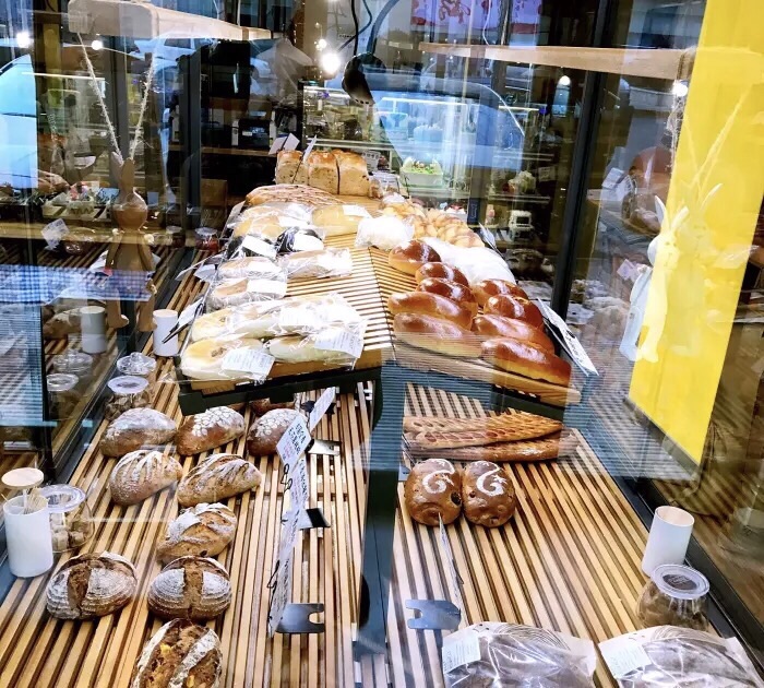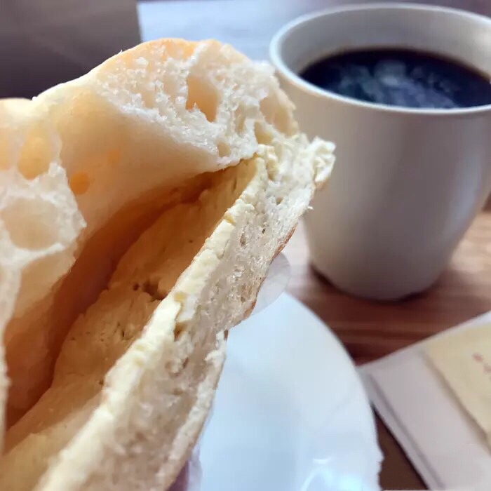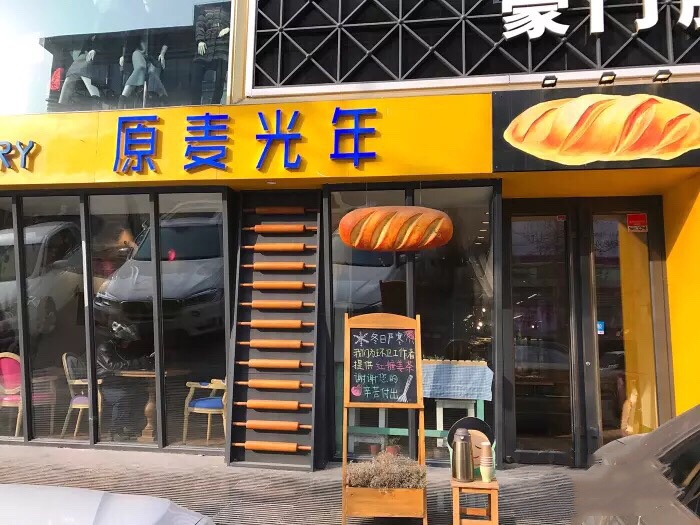 街上讲究健康天然的面包店越来越多,路过这里,先是被门口为环卫工人免费提供的红枣水的标牌吸引,这是一家温暖的面包店^_^;进到店内,自取托盘选了合眼缘的面包,本要打包带走结账时发现店里还有很漂亮的休息区,于是点一杯美式,正好配我的乳酪包^_^,靠床边的位置坐上一杯咖啡的时间~ 热情的店小妹还帮忙分割了堂食的面包方便食用,乳酪包柔软可口,里面一层厚厚的奶酪馅浓香细腻,还有着自然发酵的酸香╮(╯▽╰)╭,大爱! 乡村裸麦就是那种糙糙的外表,丰富的内心戏,是个好演员!错了是个好面包ಠ_ಠ