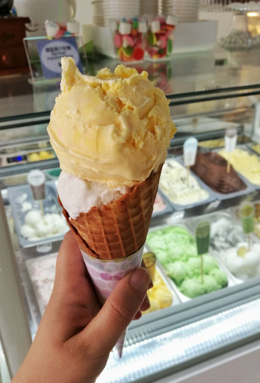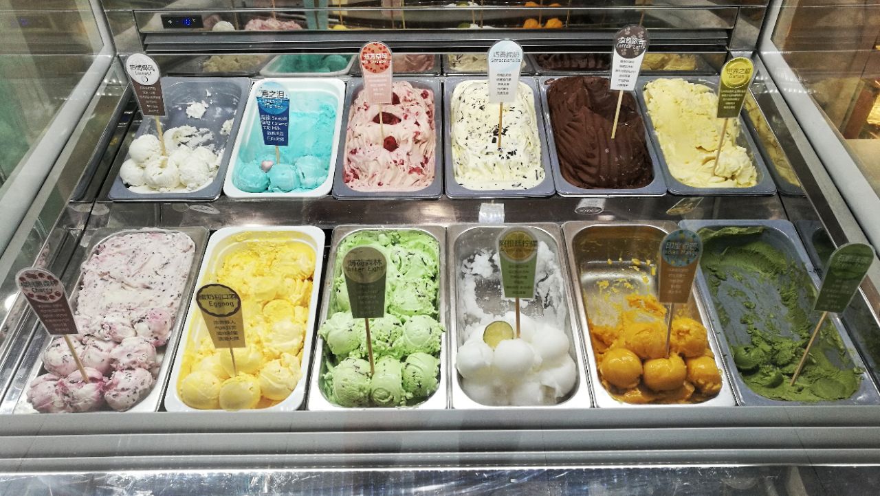 店员推荐了榴莲,巧克力,薄荷,蛋奶,不过我最终选了蛋奶利口酒和椰子口味