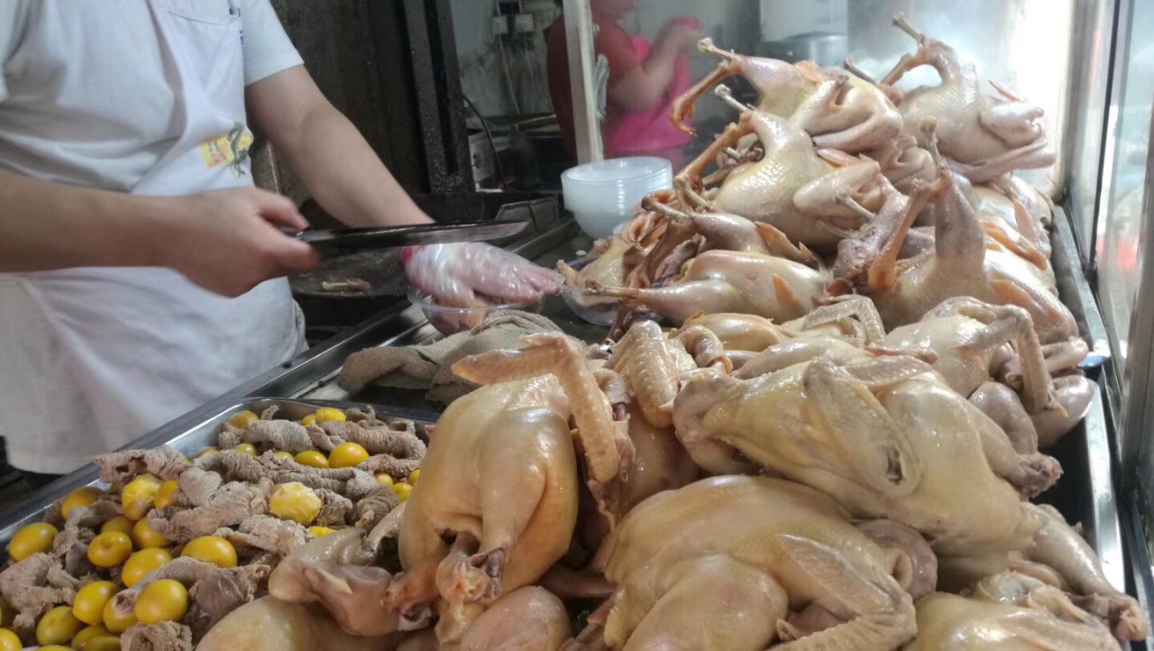 南京市民赶清凉早市,将美食带回家。一早起来去往早市街道 鸡鸭鱼肉 人群涌动 喊价还价声不绝于耳 熟食店前排起了长龙 食品鲜美