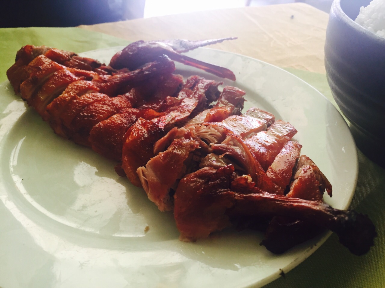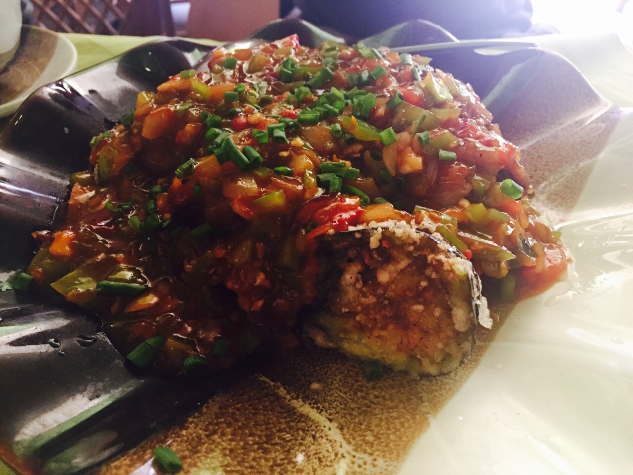 吃了两个推荐菜,龙脊茄子和老地方脆皮鸭,还喝了一壶柠檬茶。我本身是不喜欢吃茄子的,但这里的茄子做的很好吃,有点脆脆的,没有那么软,汁也很好吃,脆皮鸭感觉还不错。柠檬茶有点少但是很好喝。环境挺文艺的,就是苍蝇有点多。