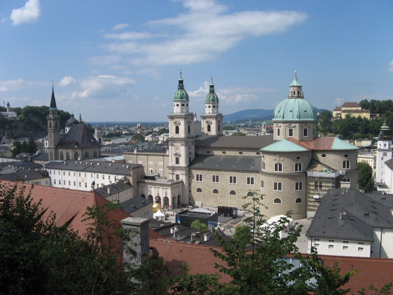 网友2017-08-27二座灰白色的塔楼上绿色的圆顶非常醒目,牆内竖着个尊高大雕像,教堂内可看到莫扎特的洗礼池和他演奏...萨尔茨堡大教堂座落在城市中心,是一座古老的巴洛克式建筑,二座灰白色的塔楼上绿色的圆顶非常醒目,牆内竖着个尊高大雕像,教堂内可看到莫扎特的洗礼池和他演奏过的菅风琴。