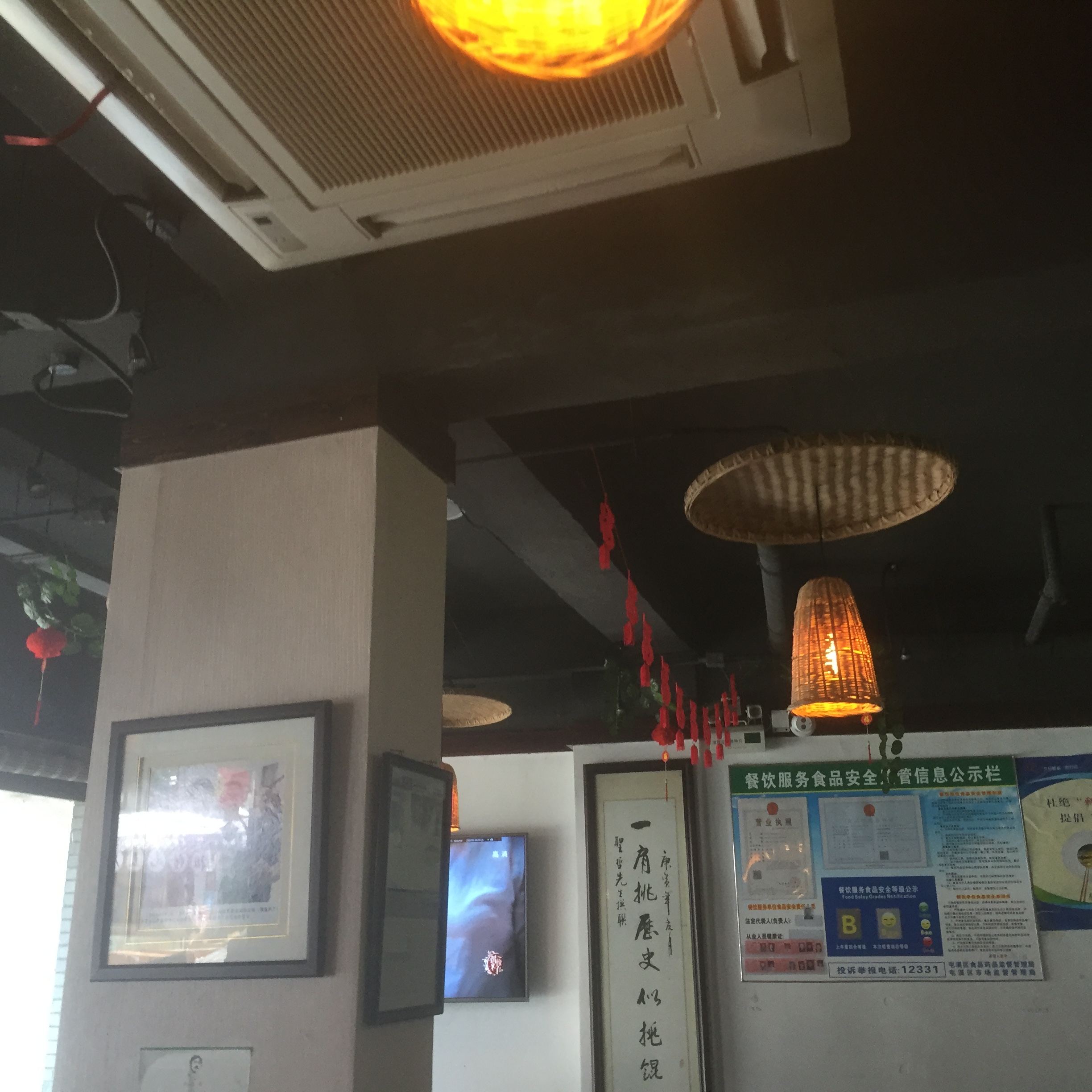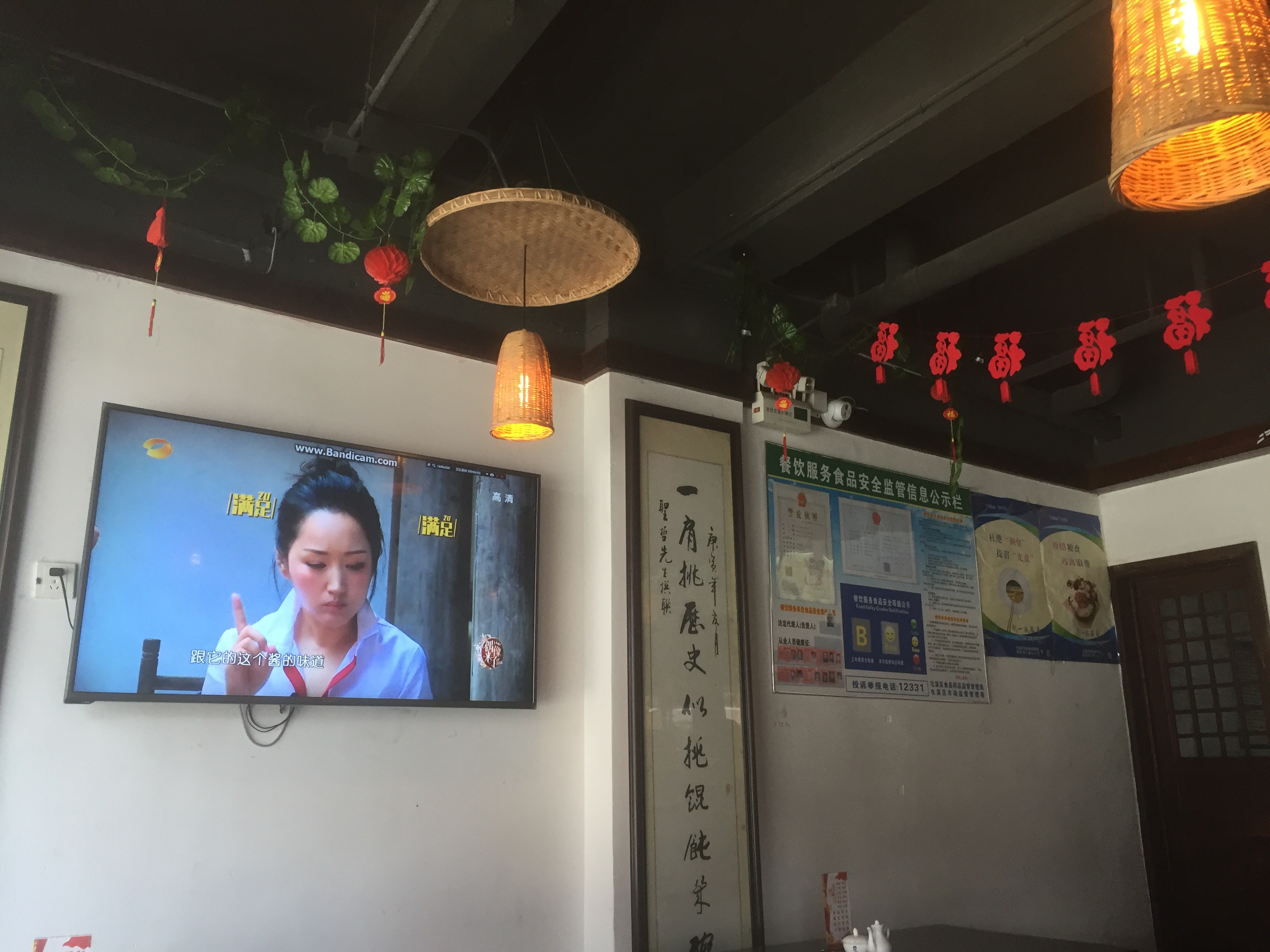 看他家来吃的人, 也都在看墙上挂着的大电视, 里面滚送播放着明星们品尝各种美食