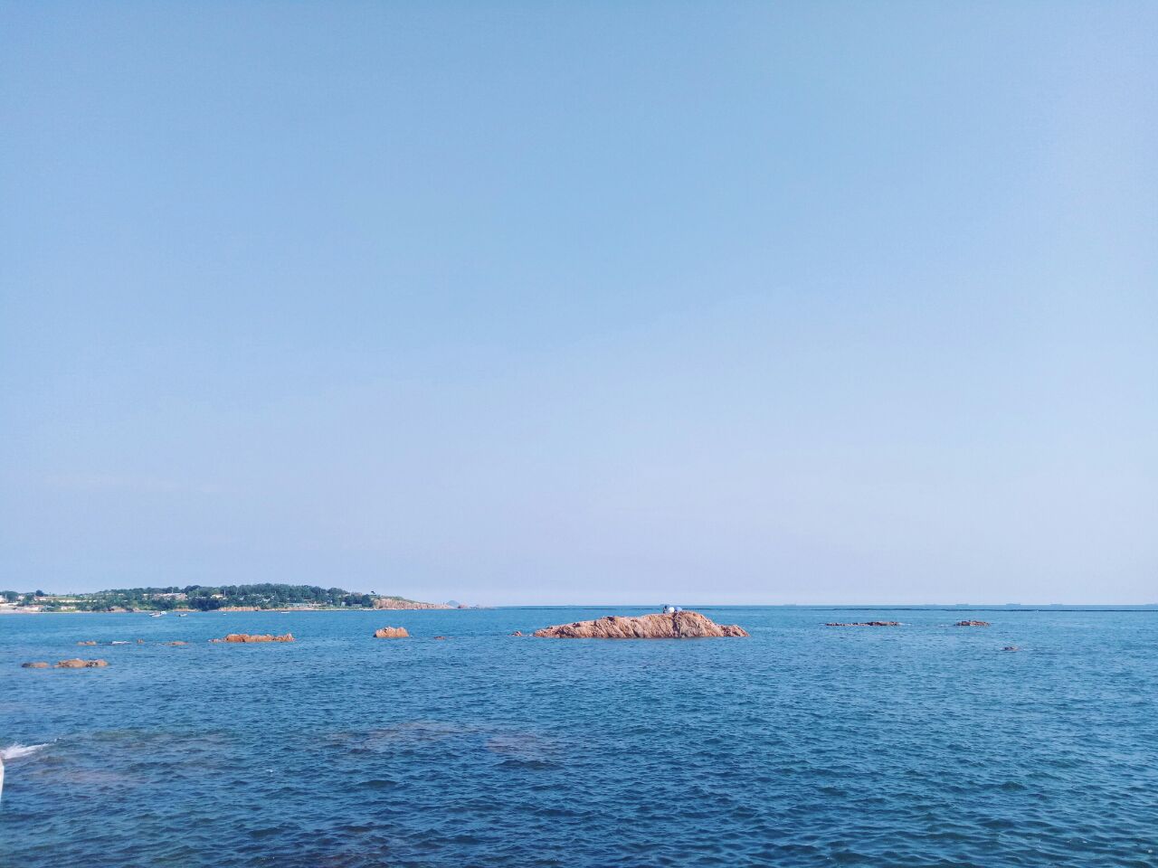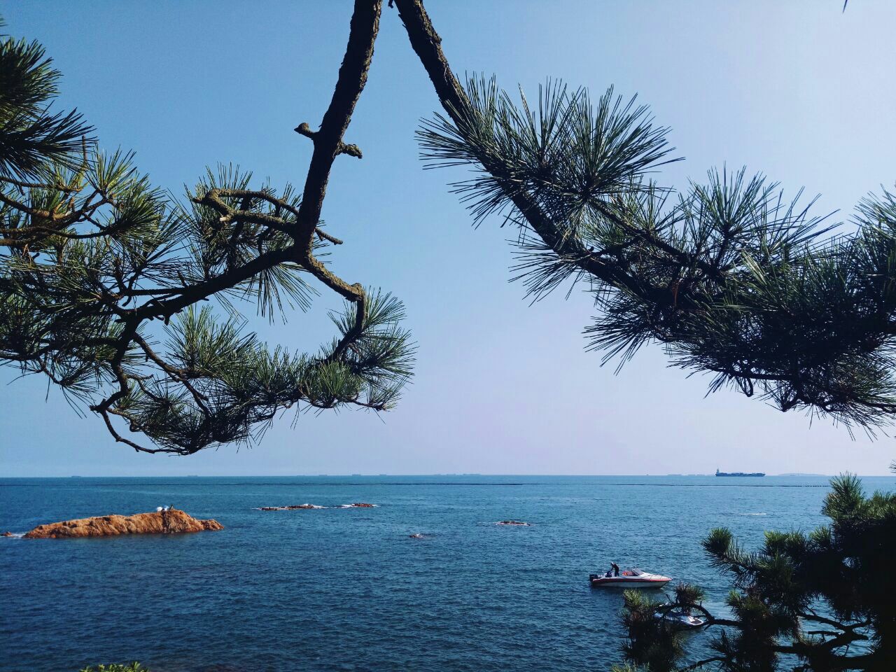 ...站着半山腰往下看,海水像天空那么蓝,在远处都分不清是海还是天了,第一海水浴场是最好的看海地方了有沙滩,有长长的码头,这里的海很蓝,旁边的山上是花石楼,站着半山腰往下看,海水像天空那么蓝,在远处都分不清是海还是天了,第一海水浴场是最好的看海地方了。