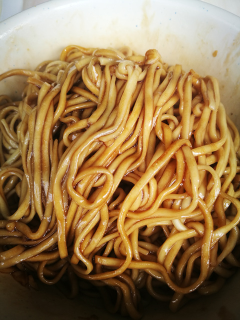 ...了吃,额外加的一碗,面条的口感很好,味道调的特别好,有荤油和蒜泥,拌匀了以后颜色诱人,好吃极了
