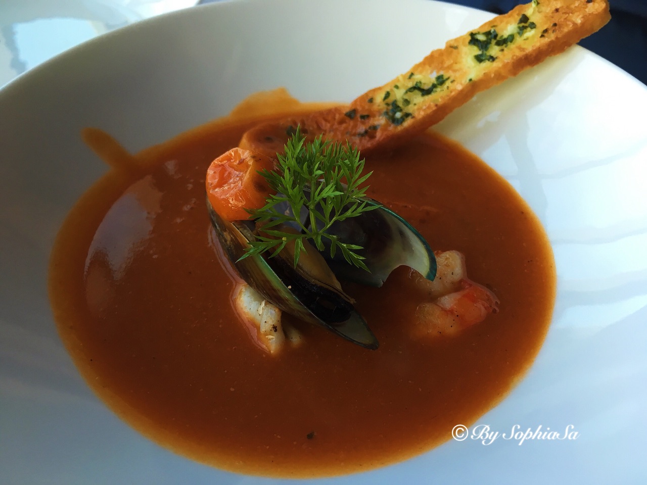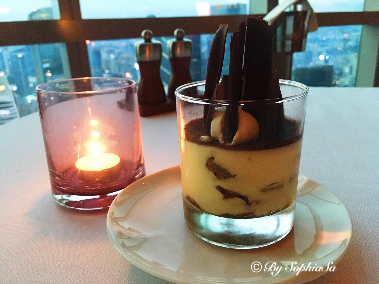 一直很多朋友都说柏悅很不错,挑选了天气特别好的晚上过来试试菜,环境的确一流,就在65楼,只是比四季的意珍矮了几层,但是依然把整个珠江新城的夕阳西下华灯初上景色尽收眼底。服务也很好,坐下问要不要喝voss,哇用挪威的贵价矿泉水,有品位。价格真的不一般,于是简单地点了汤,烧鸡,南瓜饺子和提拉米苏。先上餐前面包,汤是用热好的盘子放上海鲜材料,服务生拿着热汤出来直接倒入盘子,这样最新鲜,味道倒是普通了一点,烧鸡很好吃,皮烤得香脆,肉汁丰富,可惜份量不大。南瓜饺子摆盘很漂亮,只有4只小饺子,怎么看都像是开胃菜的份量,难道我点错了?最后的提拉米苏冻得有点冰,味道真不如在意大利当地的小餐厅,但是70多块一份。就这样就吃了700大洋,亲爱的问我饱不饱,我给了他一个眼神,他马上说我们还是开车去文明路喝鸡汤吧。