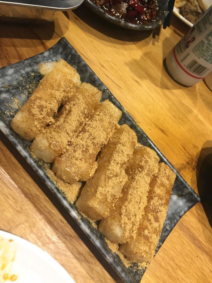 红糖糍粑特别喜欢吃里面的黑豆粉,串串很辣,还好他们有解辣的饮料,豆奶,服务态度很好,很适合聚餐...
