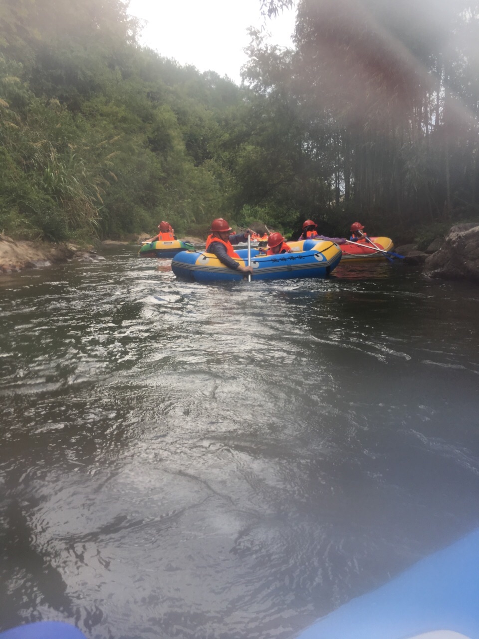 本来想去九龙溪的,因为水库在维修,没开放,就到了附近的龙门漂流,这里就像是私人的,很多环节不够人性化,也有安全隐患,订票后必须两小时后才能取票,怕小朋友等不及,所以把网上订的70元一张的票退了,现场买了110一个人的,太黑了,不过小朋友玩的还是挺开心的