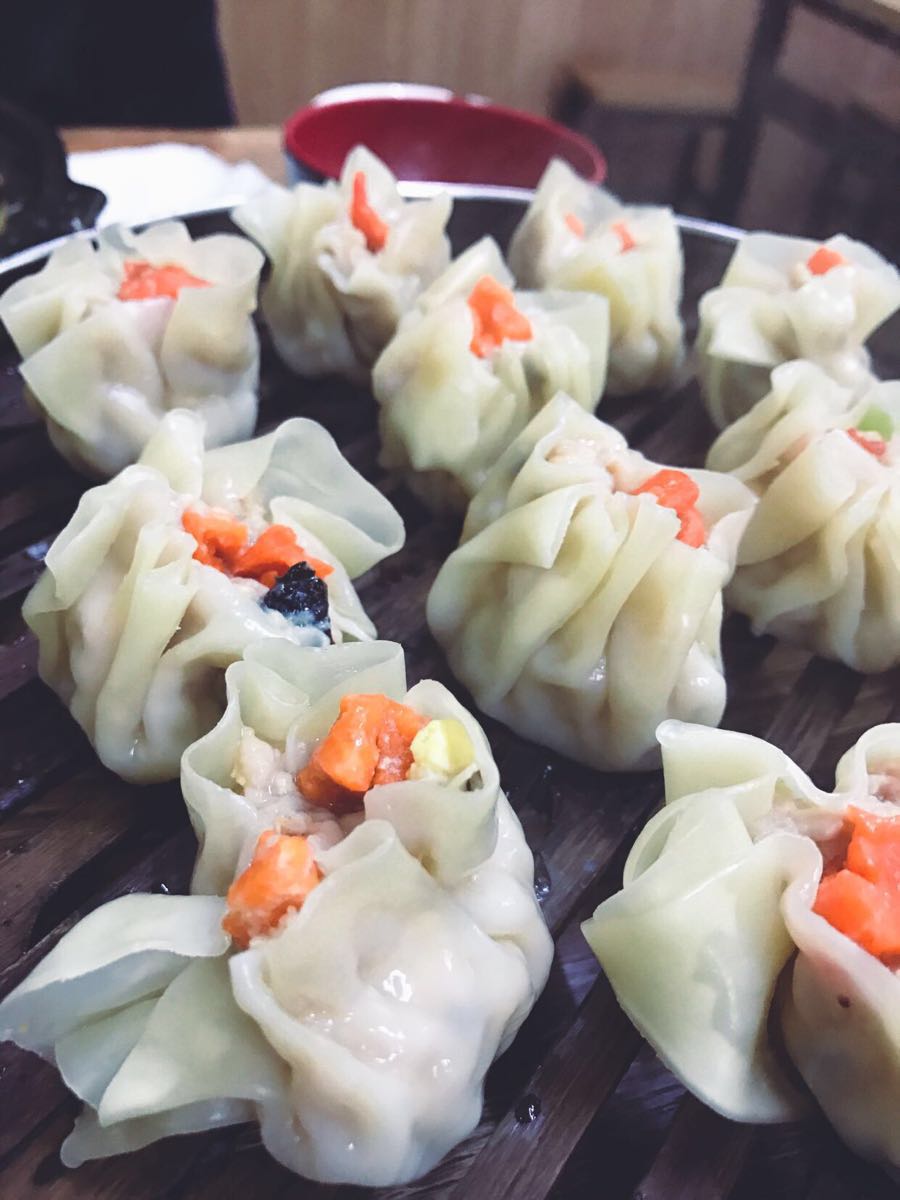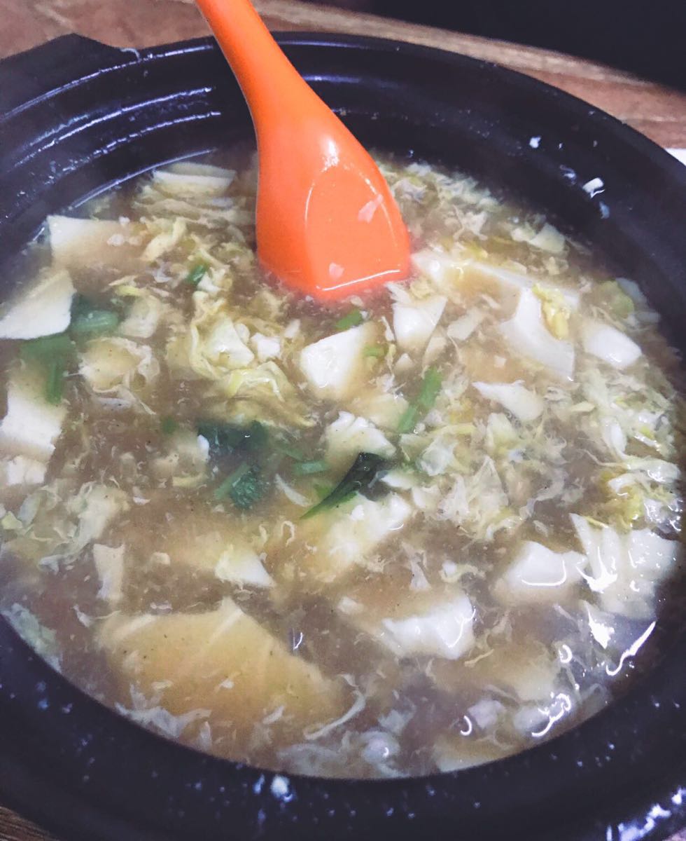 店面不大,招牌也不是特别显眼,不熟悉单行路怎么走的最好导航去。看了美食推荐的帖子特地过来试试。上次六点半到的可是店家已经关了门,这次提前到了电话,老板说通常八点才闭店,肯定吃得上。点了排名第一的茶树菇烧麦,怕不够吃又点了一笼蟹黄烧麦,但是最后强吃着还是各剩了一笼...烧麦太大只了...茶树菇烧麦是招牌,确实很好吃,馅儿特别大,能看到茶树菇躺在馅儿的最底层;每只蟹黄烧麦都顶着蟹黄,不过味道略腥,不知道如果老板改良一下掺进馅儿里会不会好些。老醋花生是甜口的,很好吃,醋椒豆腐很大一锅,汤头也比较稠。老板人颜值很高,亲和力很强的天津大哥,特别亲切~