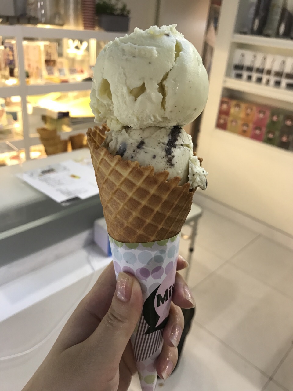 夏天要来了,冰激淋还是必须要吃的 在幸福里吃着冰激淋,愿大家都能感受到甜甜的幸福 小小店,大大的爱,服务员都很nice 一共有12款口味,选了奥利奥和海盐香草夏威夷,奶味浓浓的好吃,而且不腻 必须要说的是下面的脆皮很好吃 还有一瓶花茶赠送,不过花茶的味道有点不习惯,觉得怪怪的