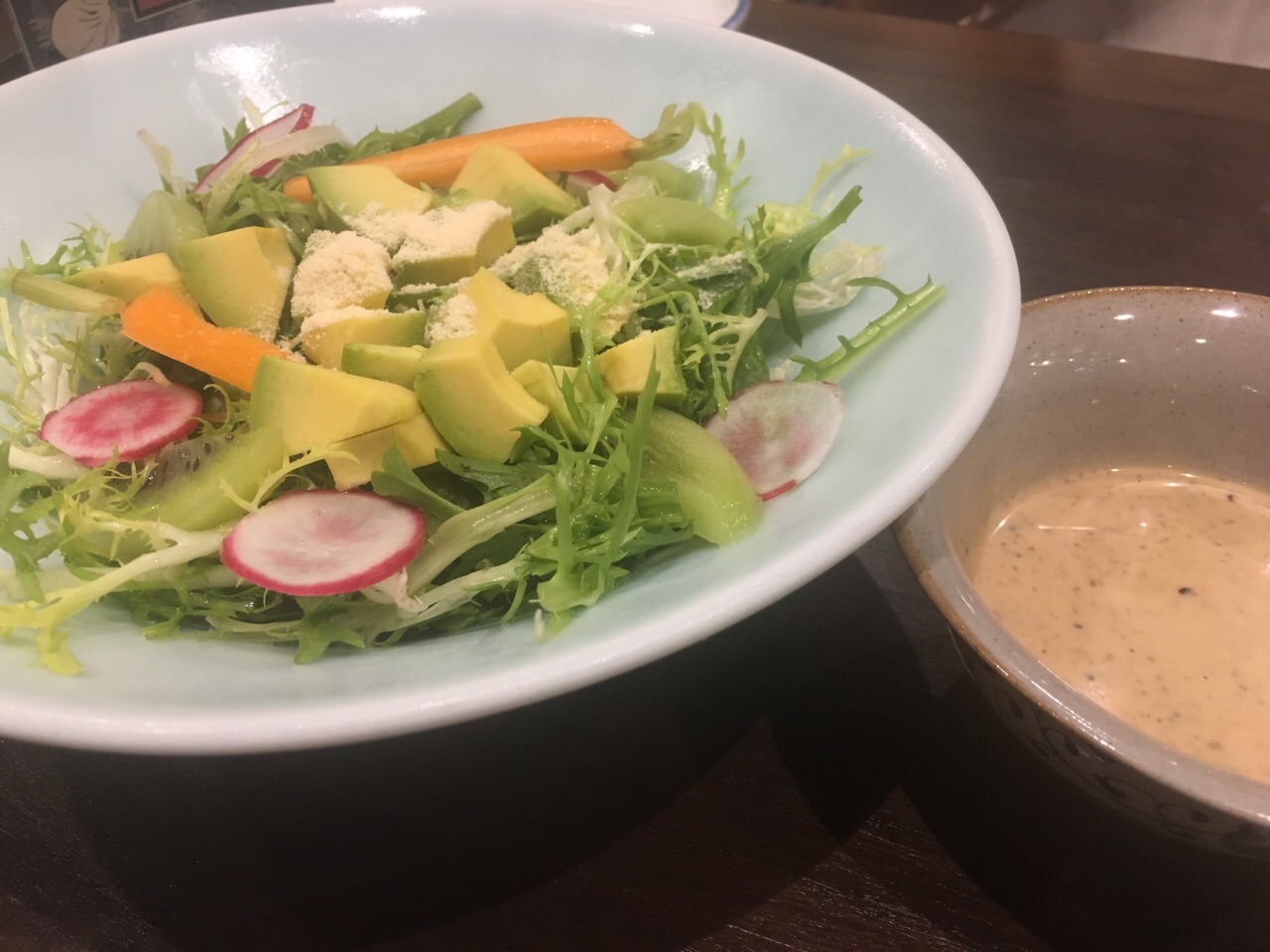 老字号的餐厅又开在了家门口,必须来品尝一下。地方小的可怜,怪不得老需要排队呢,一定要早去!其实团购的套餐就还不错,不过一起去的小伙伴想要吃鱼,所以就单点了。牛油果沙拉还不错,喜欢冰草,爽口脆脆的。感觉中餐厅有沙拉还是挺少见的。牛肉油条味道不错,就是油大,凉了没法吃了。清蒸黄鱼肉质很嫩,口感清淡,所以有点腥味。生煎包是必点的了吧,确实不错。服务员态度不错,就是人手少。