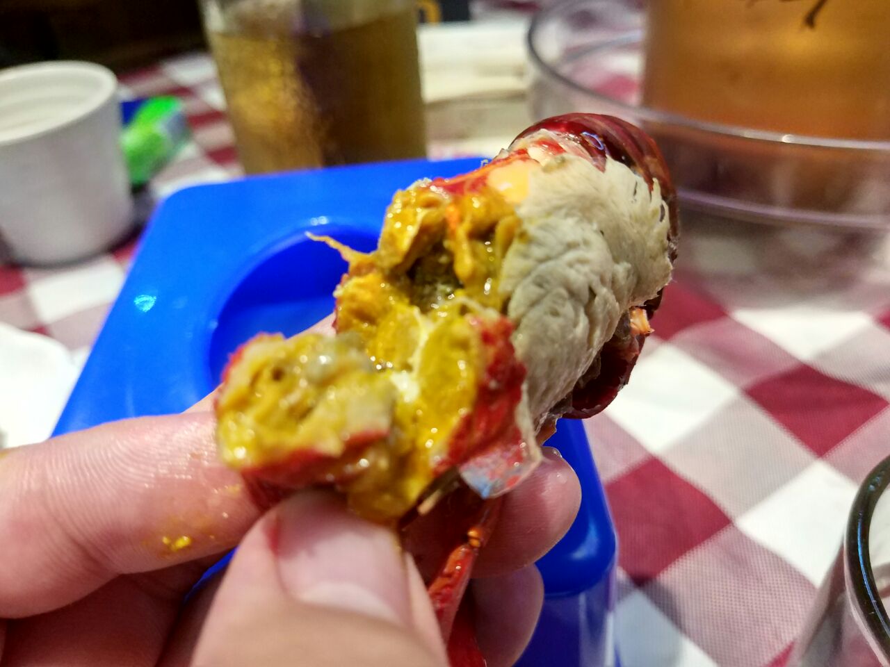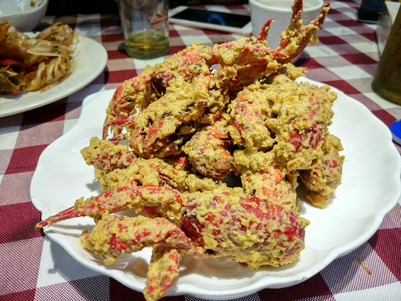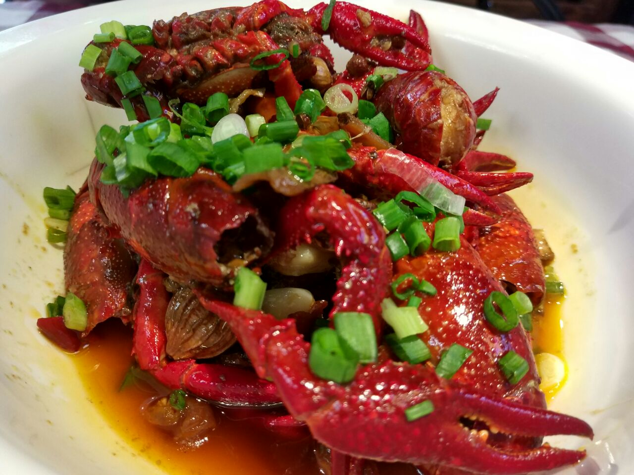 环境上简单大气,又带一丝工业风格。程大研究广州口味的小龙虾晚上生意络绎不绝,冰镇小龙虾虾膏丰腴,虾脑黄也是金灿灿,金沙小龙虾特色咸蛋黄包裹处理好的的小龙虾,每一只入口都吃的干干净净,十三香系列,做的入味,可以加入一些藕片值得推荐。油焖膏蟹看着都已经欲罢不能了,蟹肉丰满,最爱椒盐濑尿虾,大的让人尖叫,虾肉满分,肥肠鱼,回味每一次入口的感动,推荐锅贴,手工菜,薄如纸,然后配一点小龙虾的汁,那是相当好吃,哈哈哈哈哈哈哈哈