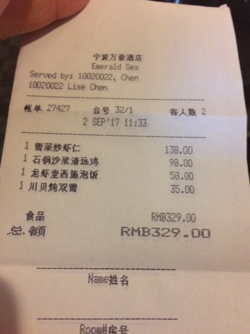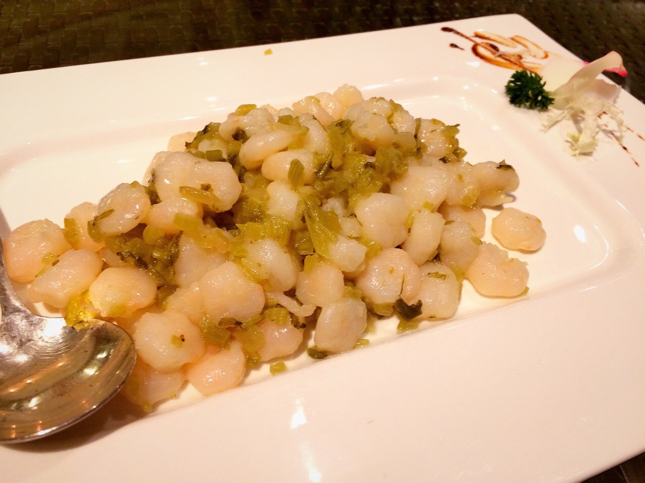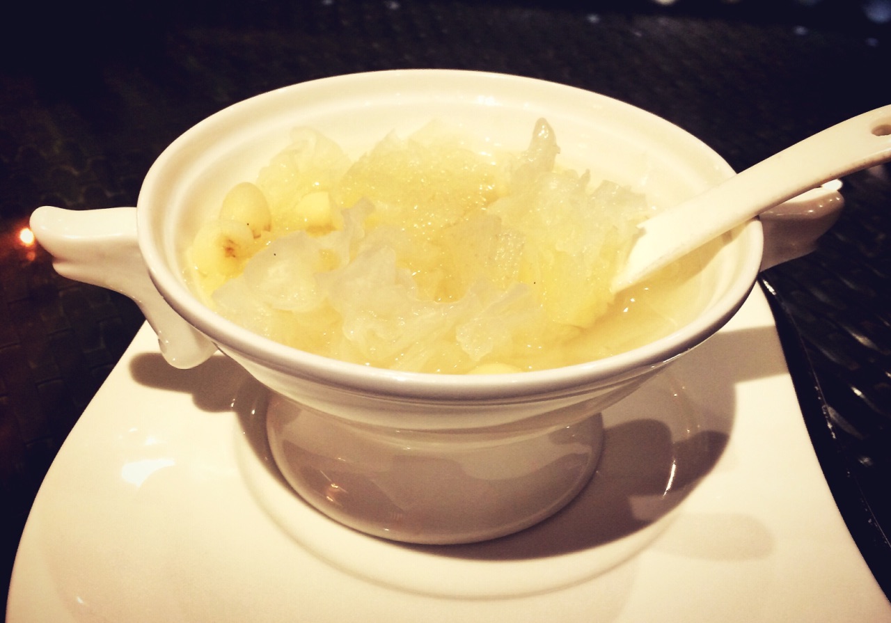 入住酒店不想出门直接在中餐厅用餐了,很多人来这里是为了吃点心自助的,因为性价比较高,不过个人还是喜欢单点,出品质量会好很多。点了些清爽的菜,吃的也很满意。 雪菜炒虾仁138,虾仁各个饱满有弹性; 石锅沙浆清远鸡98,还以为是白切之类的,没想到是红烧的,鸡肉很嫩,还不错; 龙虾堂西施泡饭58一位,配料丰富,橄榄菜,虾仁,仙贝的组合,鲜香爽口,推荐; 最后的甜品川贝炖双雪等了很久才上桌,不过白木耳不是我们平时吃的那么糯,感觉火候不够。 周末中午有必要提前定位,餐厅服务很好,换盘及时主动。结账的时候出了点小问题,收银的专业知识较欠缺,会员的优惠政策记错了,幸好自己联系酒店。