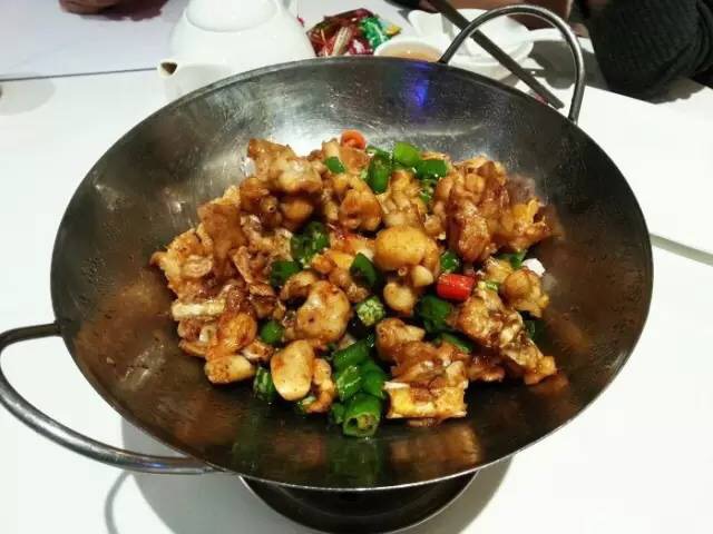 干锅鲜椒牛蛙,铺满了绿色的鲜辣椒,奇辣无比,属于重辣