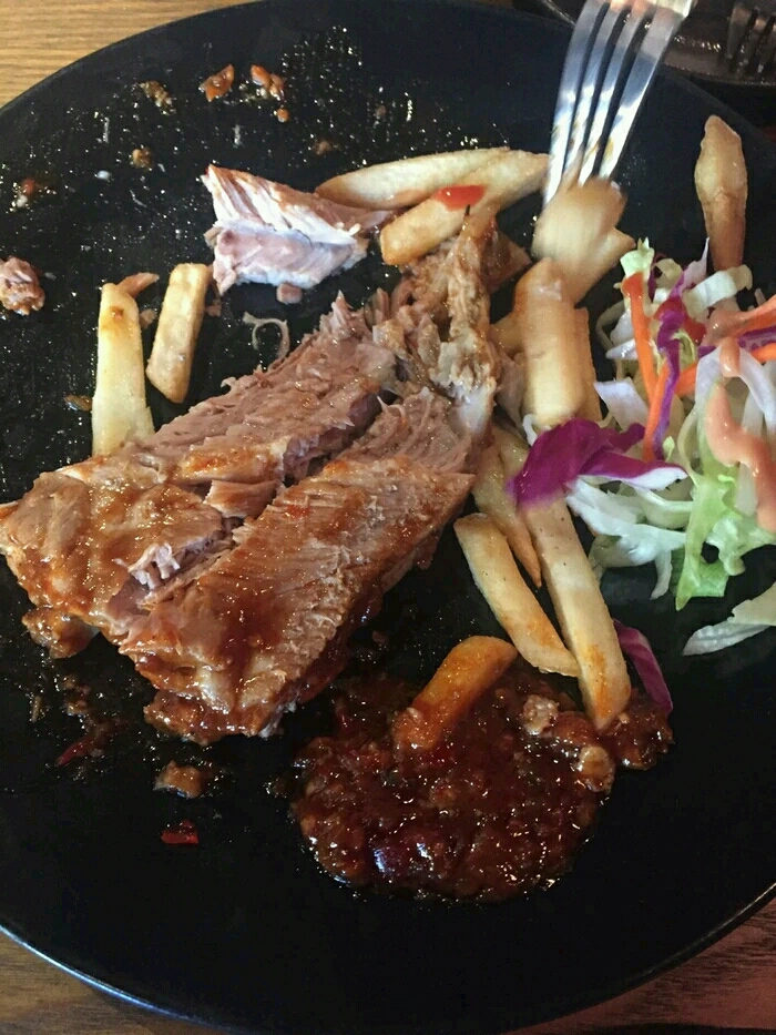 网友2017-09-04...排,用铁盘烤,配菜很多,肉质不能要求太多,只能说比起猪排要好一点,环境也一般,类似美式的快餐店平价的牛排馆,有点像国内的那种台式牛排,用铁盘烤,配菜很多,肉质不能要求太多,只能说比起猪排要好一点,环境也一般,类似美式的快餐店。