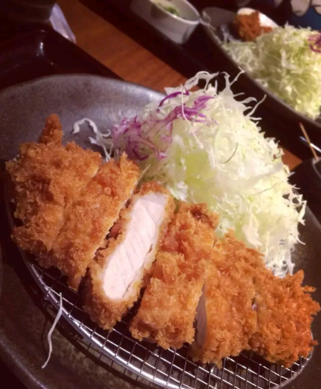 已经忘了怎么会去这家店了!扫了太多店,只能凭记忆。 茶碗蒸里面的似乎是薄荷叶,不知道加进去是为了让茶碗蒸更好看,还是为了更好吃。 炸猪排非常嫩,外面的面包粉裹的正正好好,味道调制的很完美,锁住肉汁增加风味 。 还有一个汤,太完美。