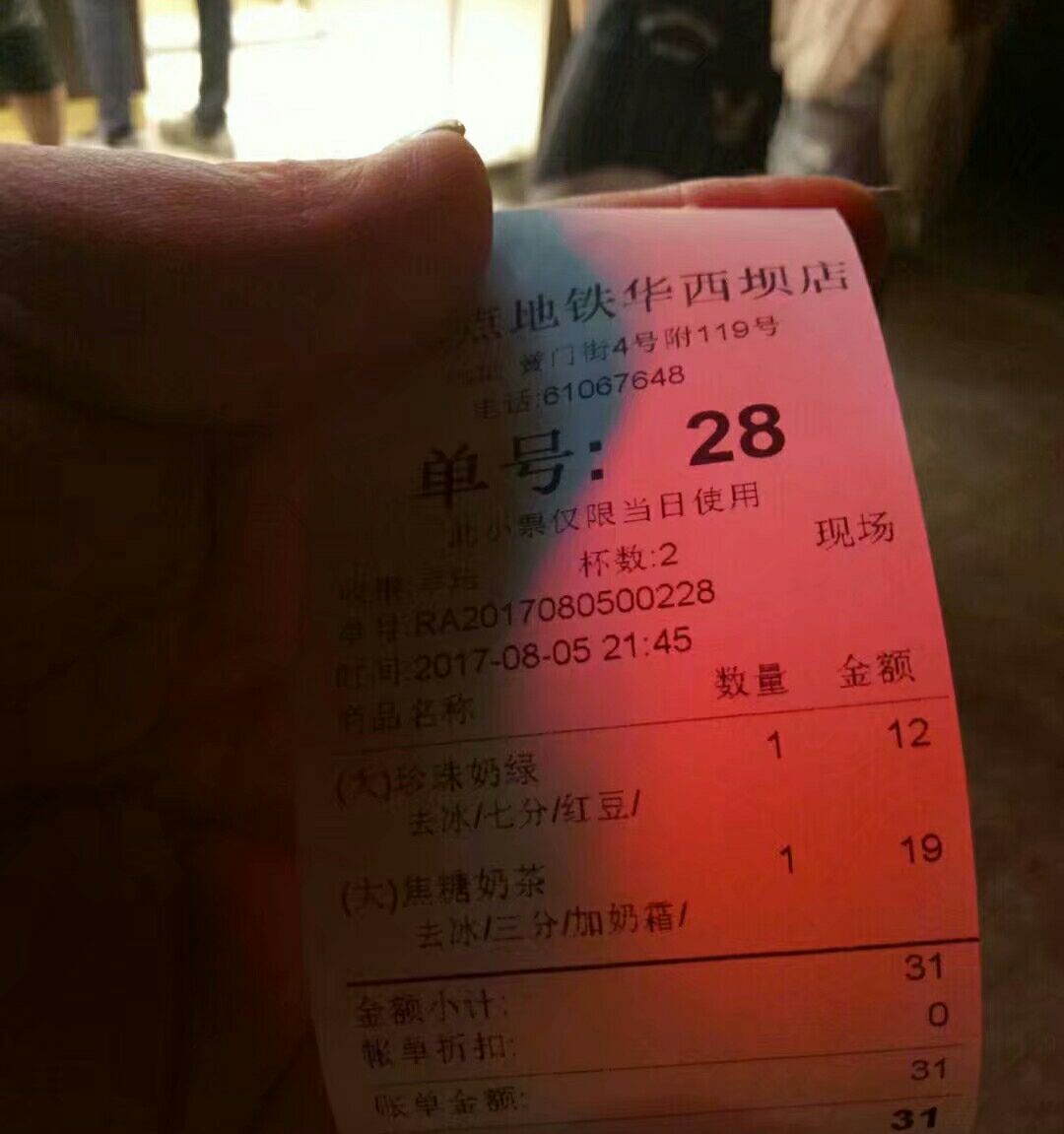吃完美蛙鱼头火锅出来迫切的想喝点奶茶,还是冰的朝华西坝地铁站方向走,偶遇一点点。店招是连锁店统一标识,绿底白字,晚上尤其显眼。 快到打佯时间了,外卖貌似还很多,几个店员都在忙碌着,点好单等了大概5分钟左右。 珍珠奶绿:珍珠只剩半份,换了半份红豆,绿茶味道不明显,透明小珍珠QQ的;焦糖奶茶:三分甜去冰,奶霜略甜,浓郁度还好。感觉没有南京的一点点好喝 服务:店员服装统一,环境整洁,服务主动。