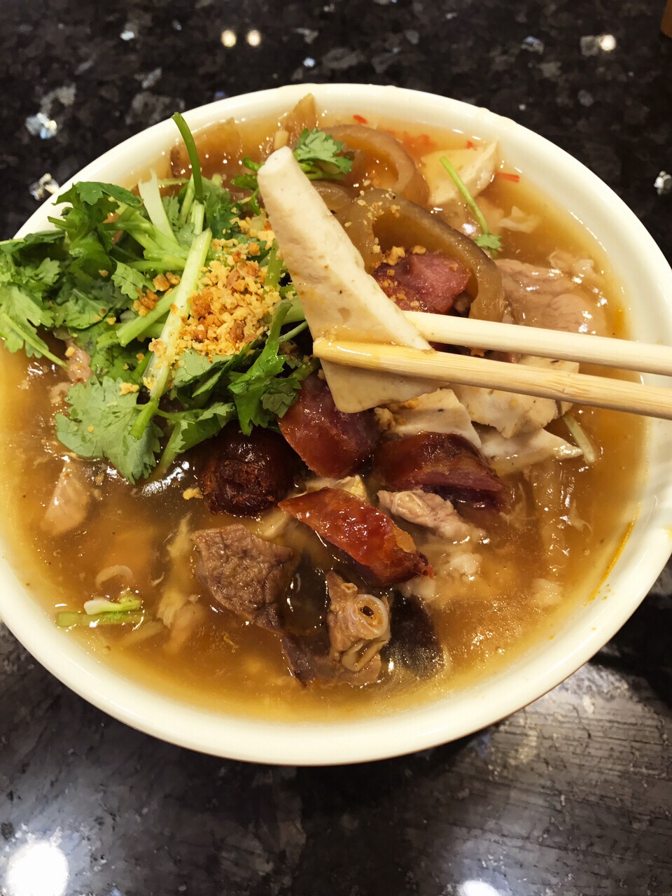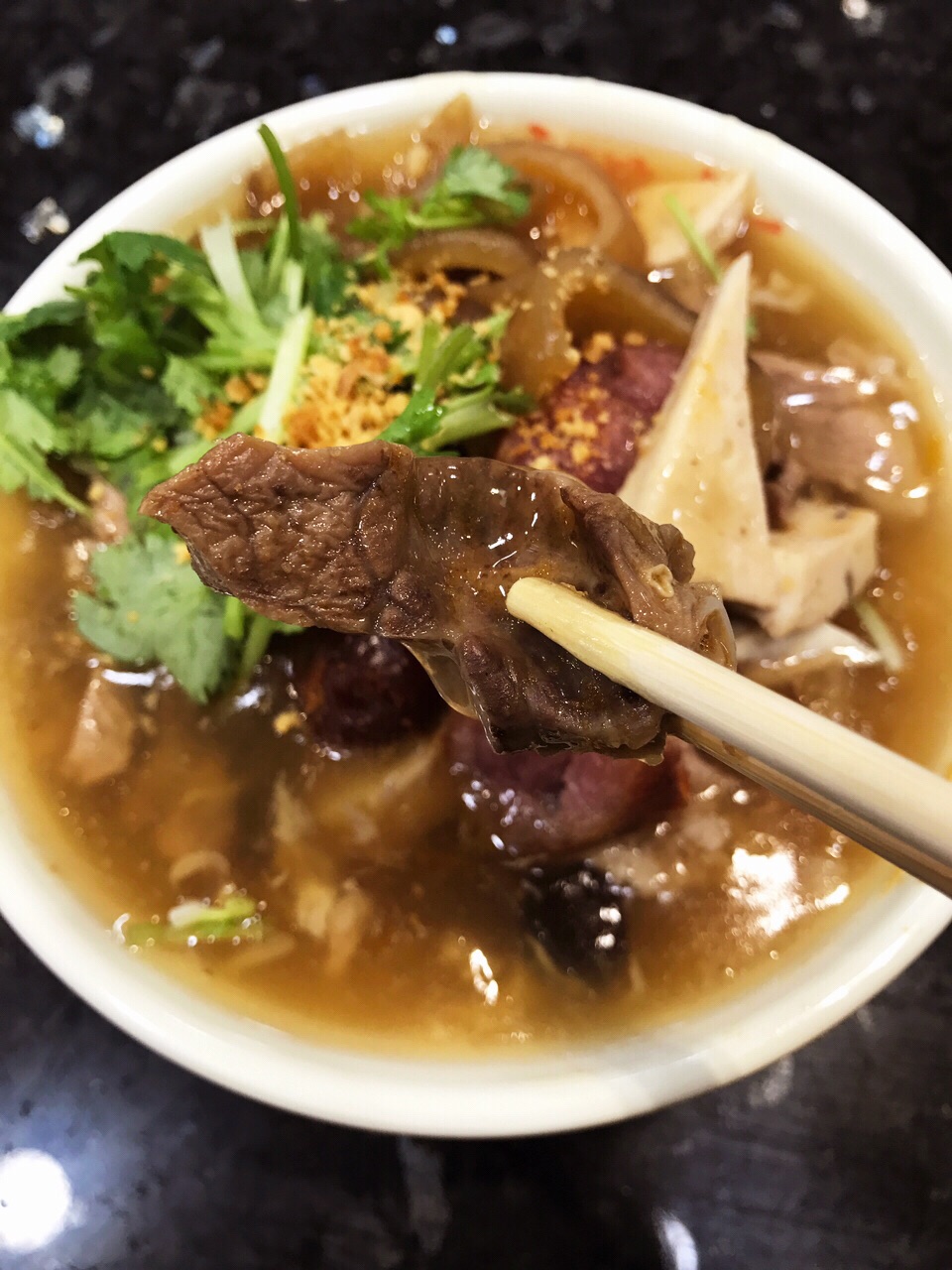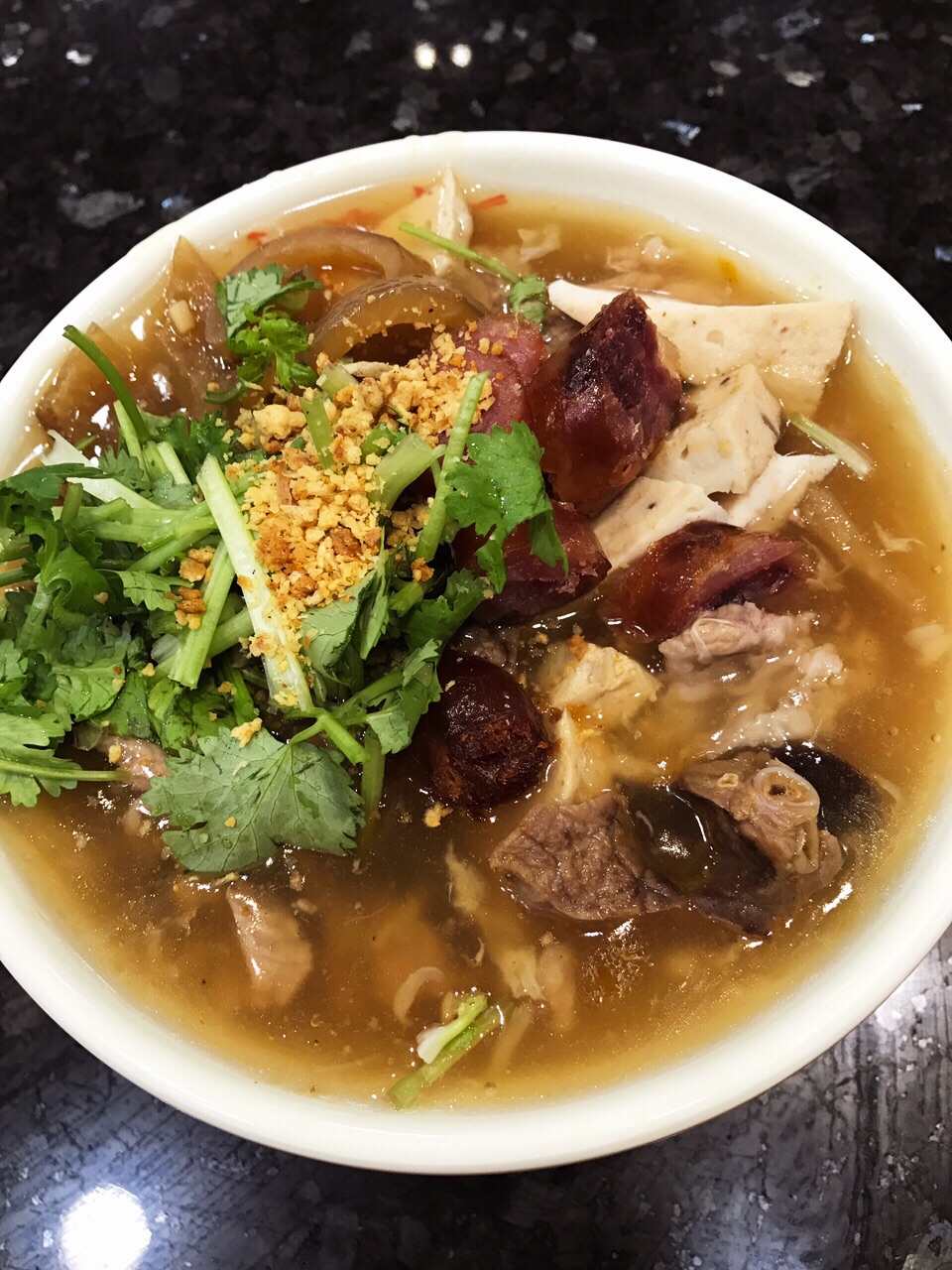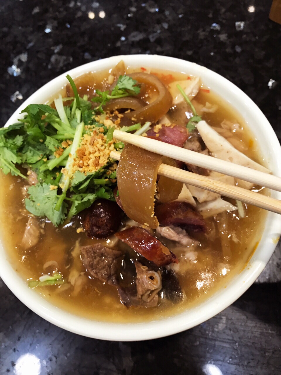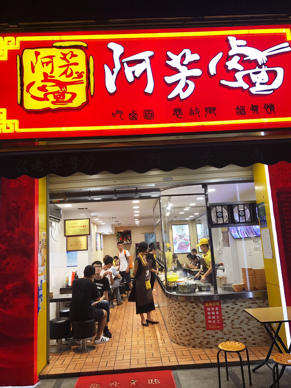 在厦门许多分店的漳州阿芳卤面,真的好吃,价位适中不过还是比漳州贵得多,图片两份面➕料33,卤汤鲜甜值得吃,碱面碱味不重,加的料有很多,煎粿比白色粿,炸粉肉也很好吃,很有漳州特色,黄花菜,肉筋,套肠,还会再来吃
