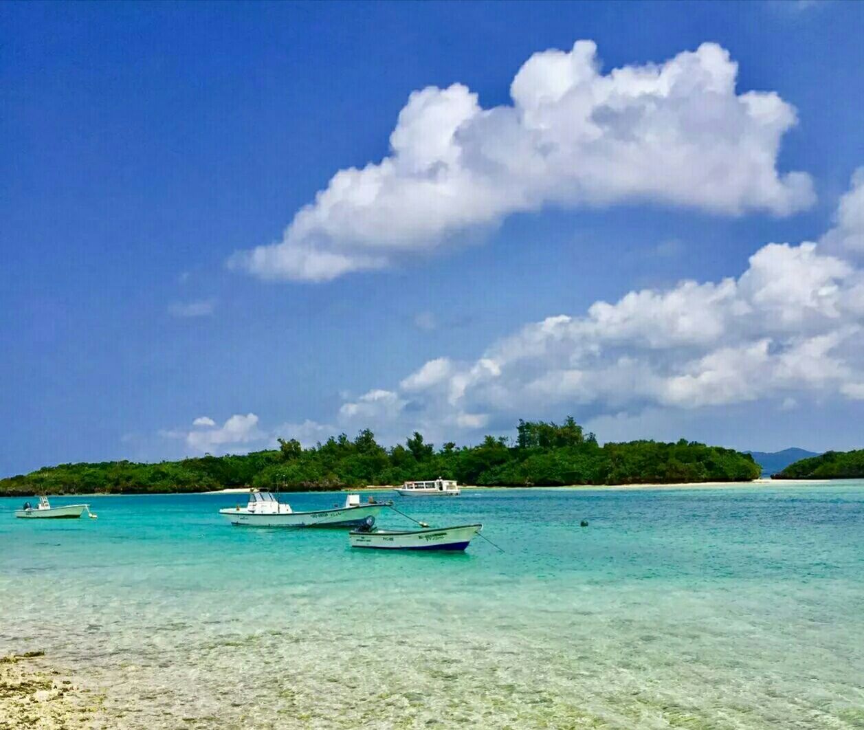 川平湾大概是石垣岛上最不能不看的风景了,这里有名列日本全国八大风景名胜的海湾,沙滩上一个个微小的浪头争先恐后地往前涌,掀起些些的波澜,宛如平静生活里的涟漪;到这里游览一定要乘坐很有名的玻璃底船,漫游海上,透过船底的玻璃就可以看到海底小丑鱼和蓝宝石鱼在珊瑚丛和海葵之间晃晃悠悠进进出出,巨大的蚌壳群散布在海床上,一翕一合地应着身边五彩小鱼的来回穿梭。海底有洁白柔软的沙床,色彩与形状迥异的珊瑚礁群,船舷之外又可以看到海面上的浪涌,相隔着一层玻璃,一转头一回眸之间可以看到宁静与波动的两个世界。非常有趣的经历,值得回味。