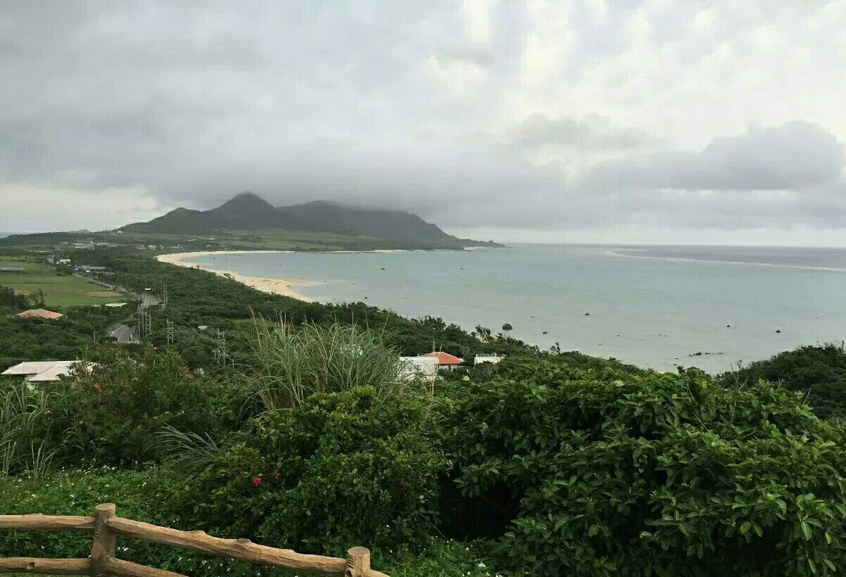 玉取崎展望台是石垣岛东侧的一个高台展望台,视野绝佳,超过180°,可以眺望从南部的野原崎到最北端平久保崎的风景。从这里向西远眺,可以看到伊原间湾美丽的白色沙滩,往东则可以一睹蓝珊瑚礁和沙滩。据说,这里也是每年夏天观赏日出的最佳场所。可惜我们去的当天已经是傍晚,云层有些厚,海看起来没有那么通透。如果天气好,云层散去,这里蓝天白云、碧海看起来一定更美。