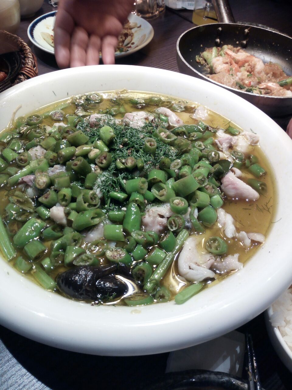 青菜砵搭配菜品,清清淡淡很好。 倔强鸡有点类似三杯鸡,又不完全一样,也挺好吃的。 服务和环境都不错