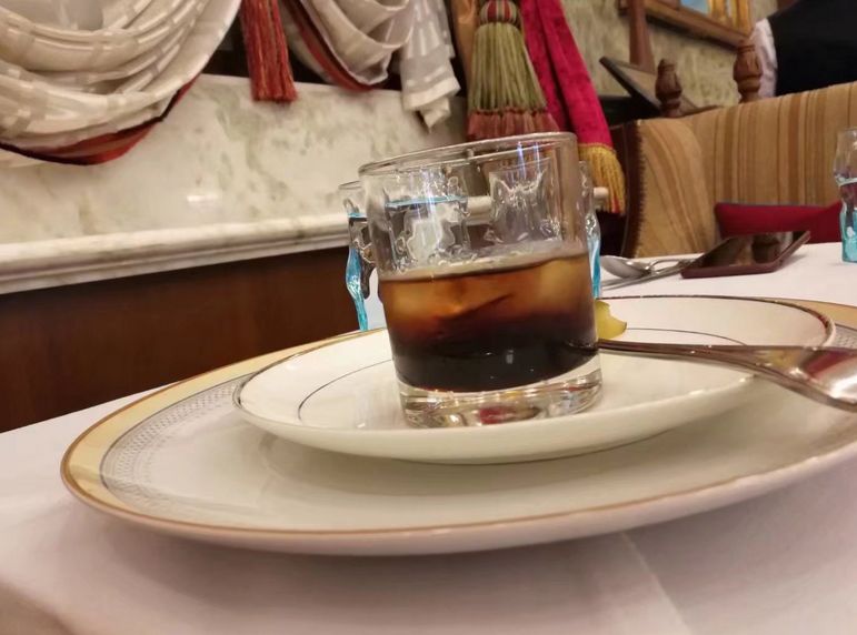 周末人多,建议提前打电话预约。 里面装修富丽堂皇,是请客的好地方。 要了黑俄罗斯鸡尾酒,度数不算高,女士也能喝,味道很棒,有一点咖啡味,量也不多。 加了他们家的招牌菜,每一道都很好吃。菜的味道比较淡,如果饭量不是特别大的人,就不用点列巴面包篮了,吃不完。